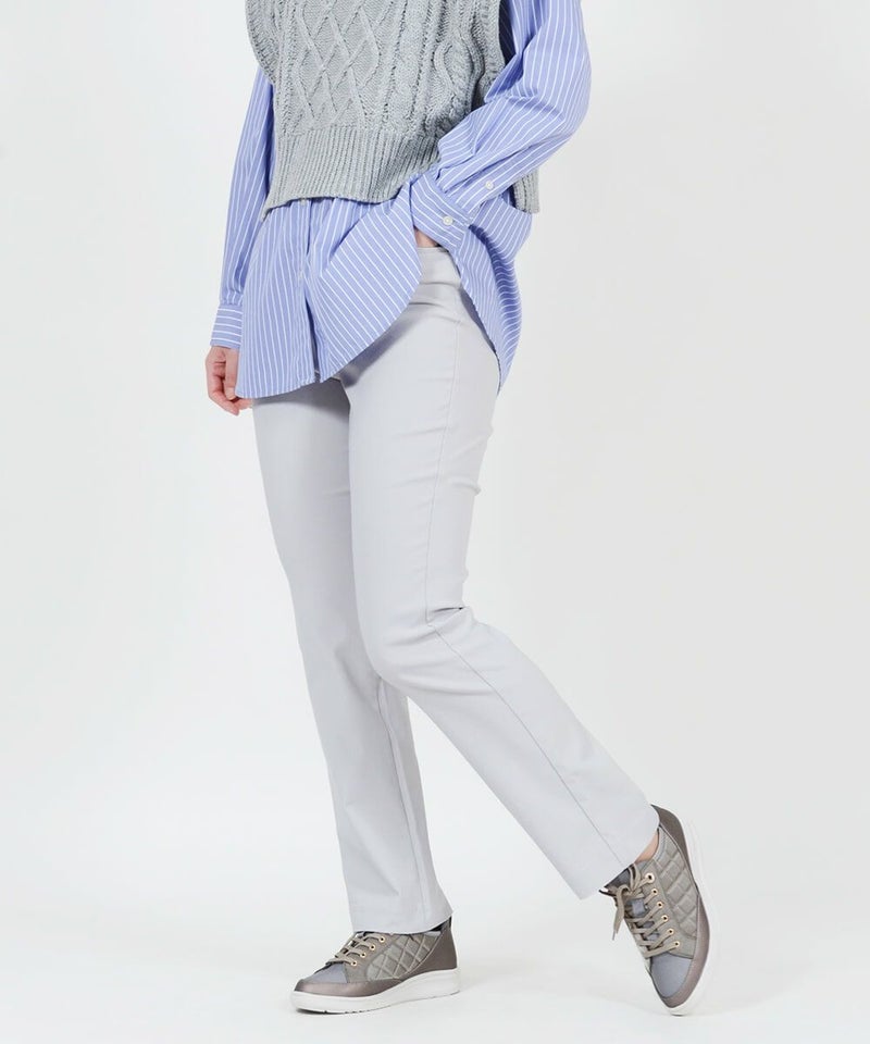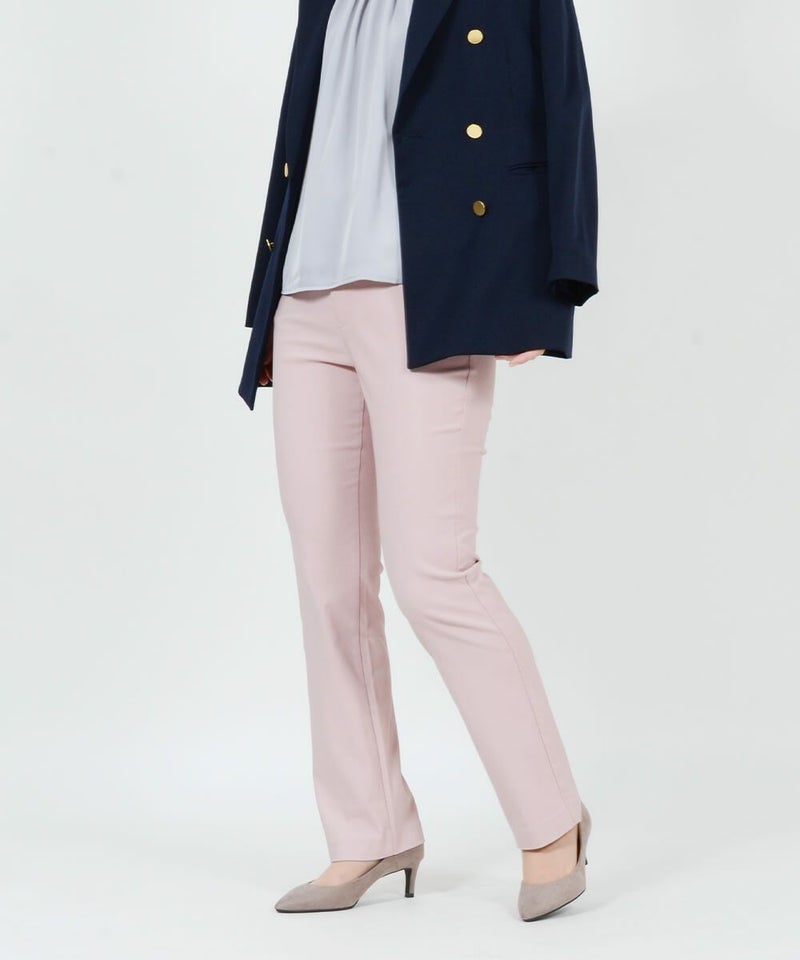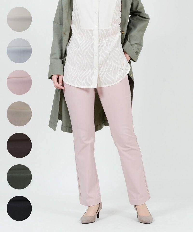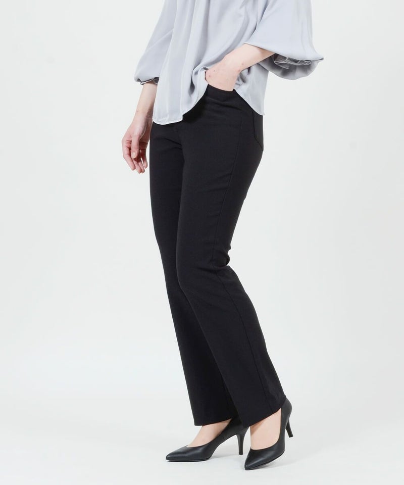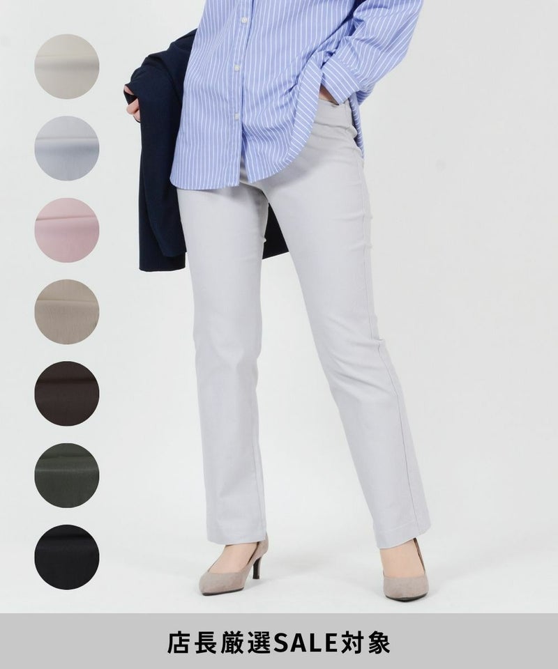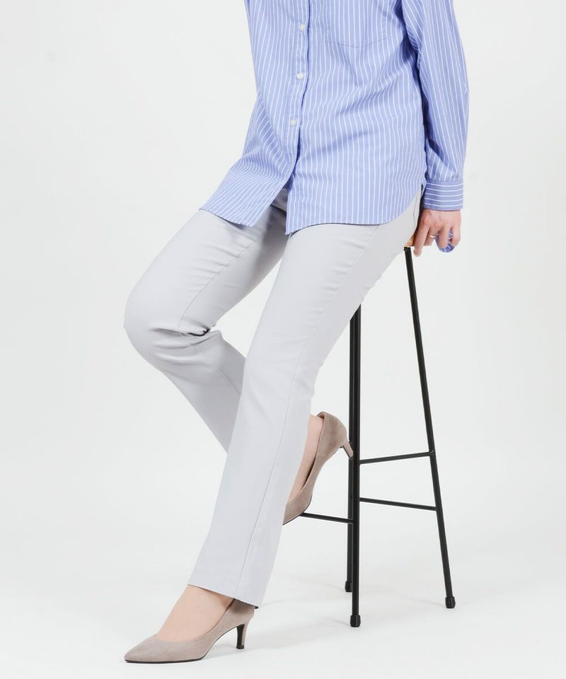 たどり着いたのは上質なストレッチ素材とシルエットから作られるストレートパンツ。当店のパンツは、年齢にかかわらず、女性なら誰もが抱える体型の悩みに寄り添い、 変化しやすい女性の体形にしっかりフィット、サポート。 長時間はいていても疲れにくく、キレイと快適を両立します。