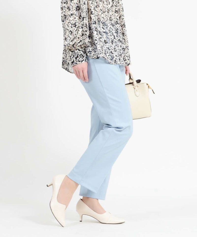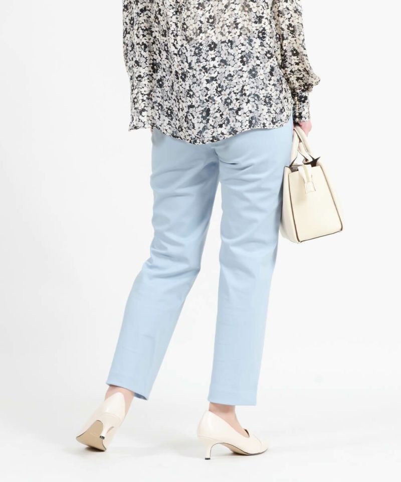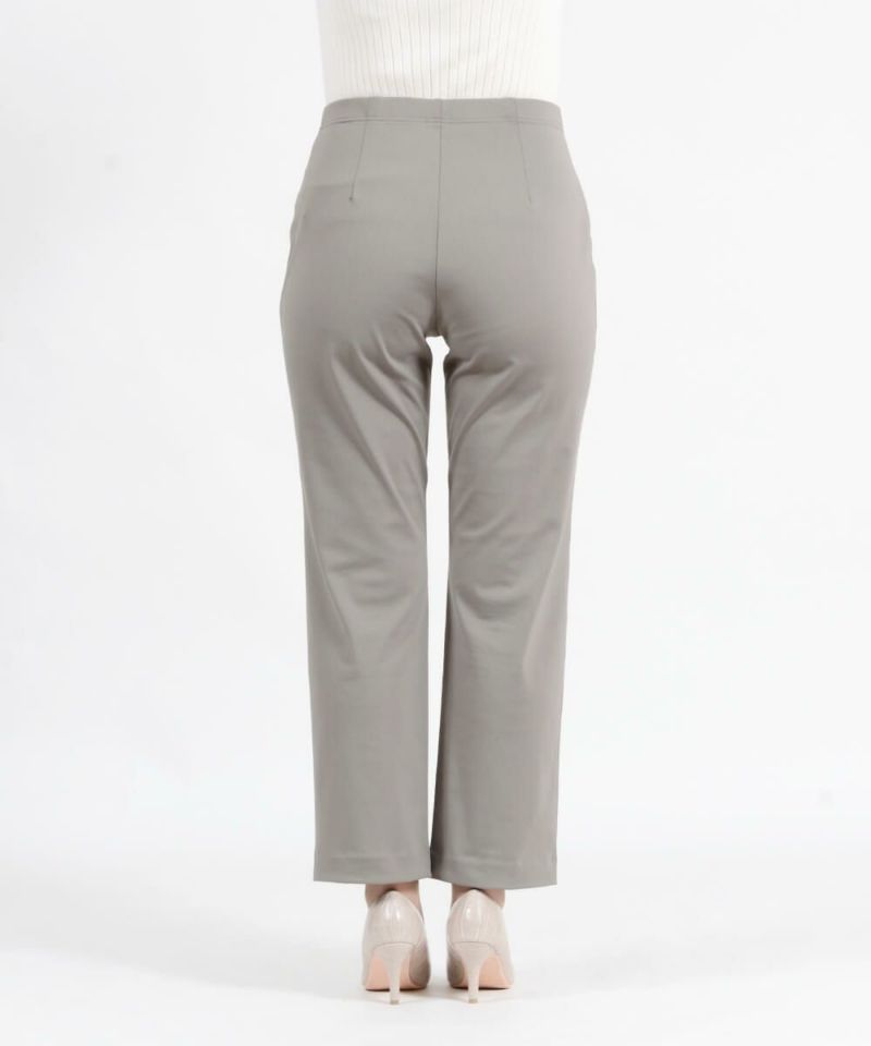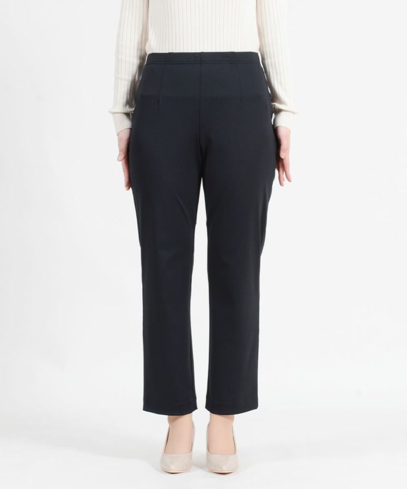 たどり着いたのは上質なストレッチ素材とシルエットから作られるストレートパンツ。当店のパンツは、年齢にかかわらず、女性なら誰もが抱える体型の悩みに寄り添い、 変化しやすい女性の体形にしっかりフィット、サポート。 長時間はいていても疲れにくく、キレイと快適を両立します。