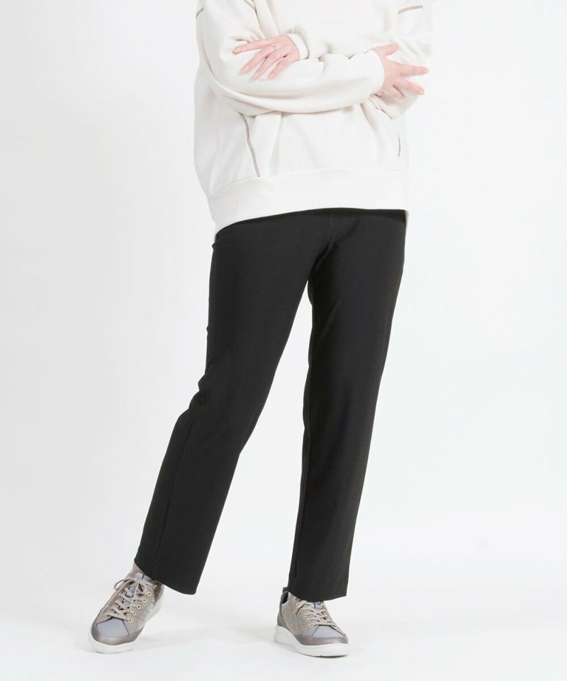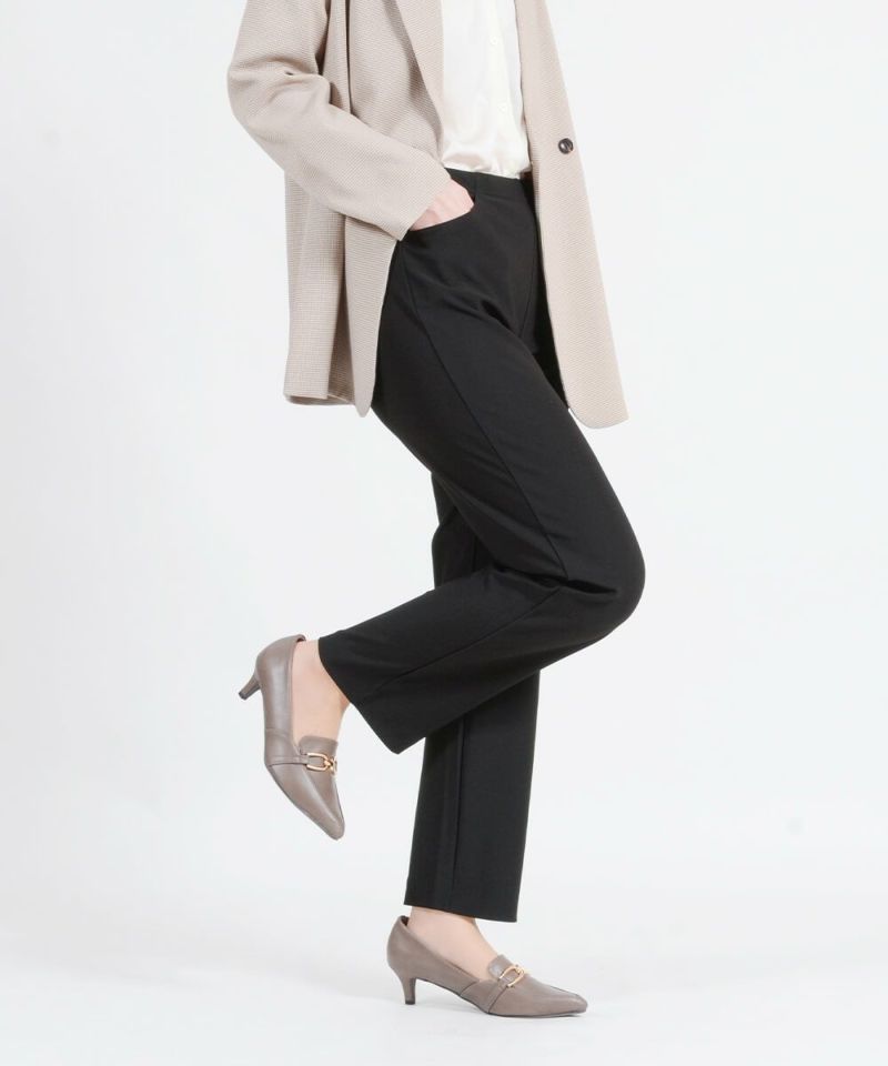 たどり着いたのは上質なストレッチ素材とシルエットから作られるストレートパンツ。当店のパンツは、年齢にかかわらず、女性なら誰もが抱える体型の悩みに寄り添い、 変化しやすい女性の体形にしっかりフィット、サポート。 長時間はいていても疲れにくく、キレイと快適を両立します。
