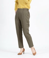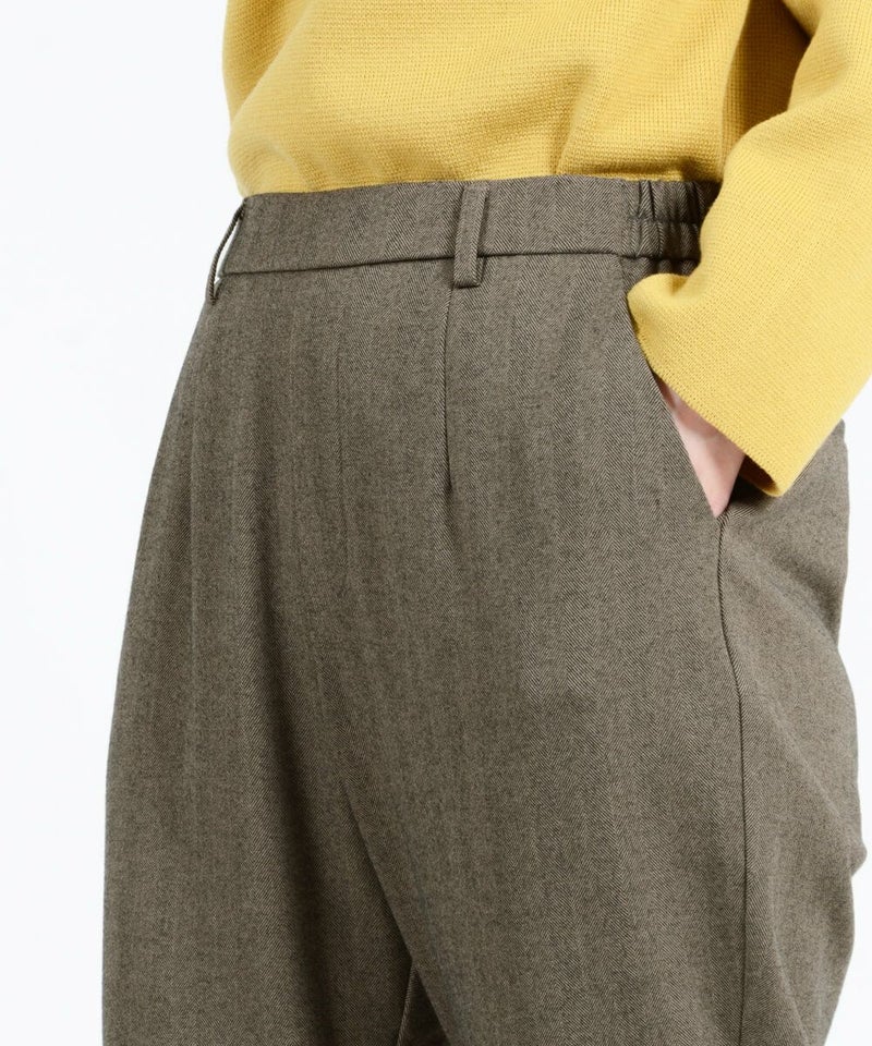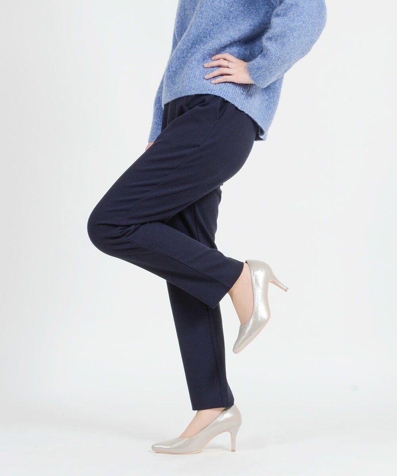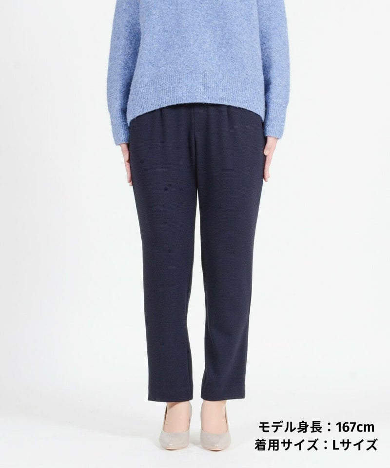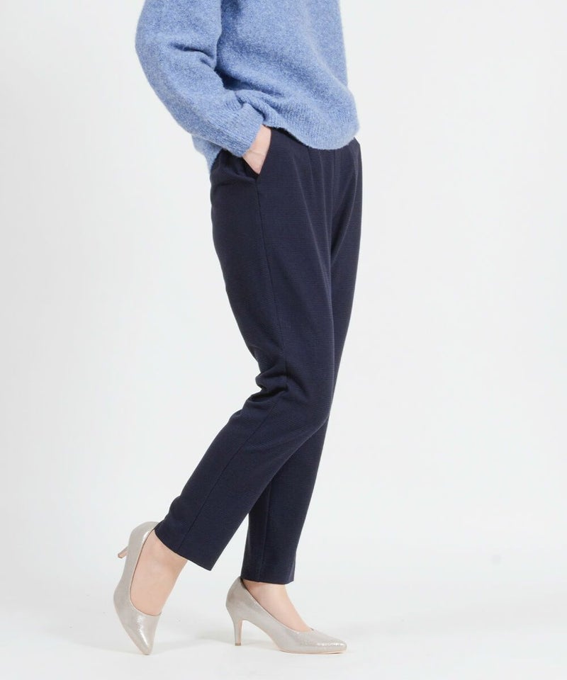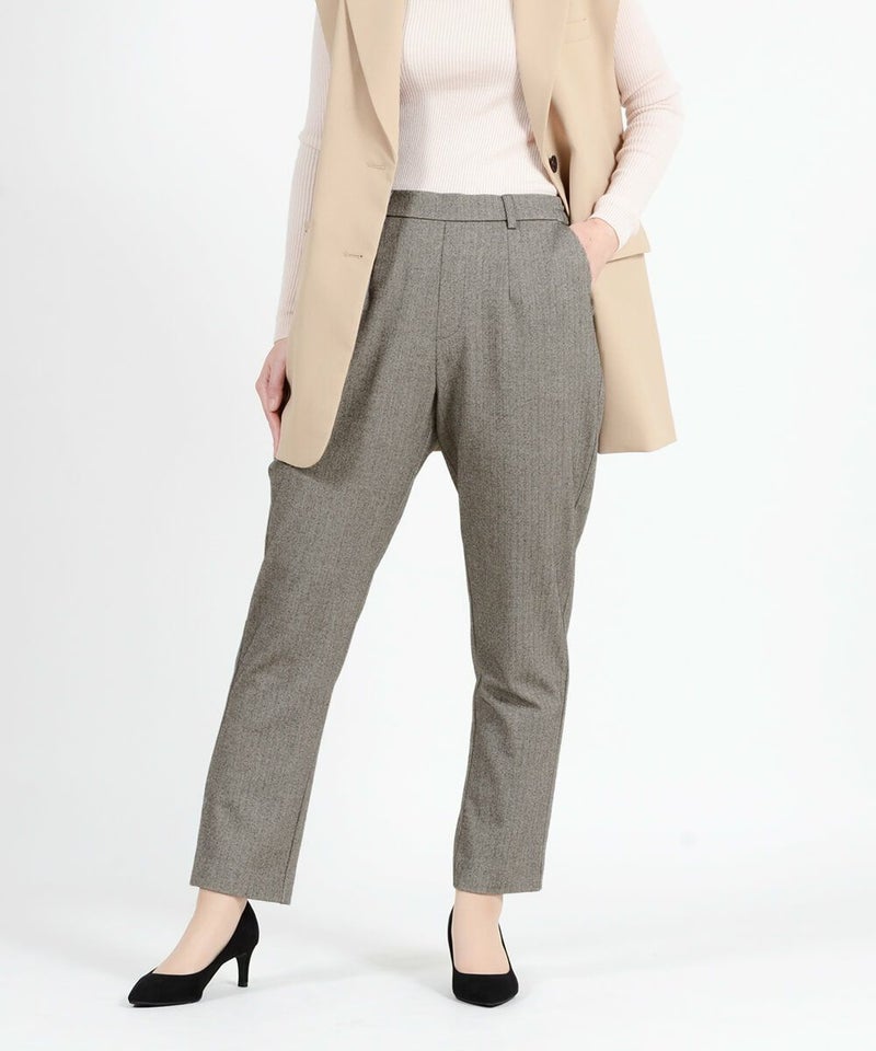 腰回りはゆったりとしたデザインながら、裾にかけて細くなるテーパードシルエットは、脚をすらっと見せてスタイルアップ効果◎