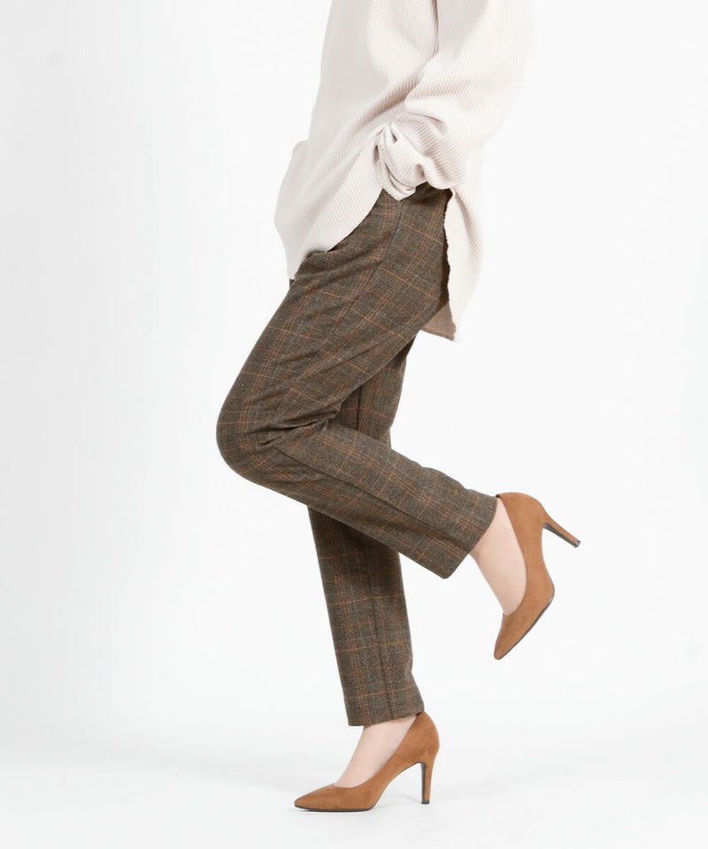 たどり着いたのは上質なストレッチ素材とシルエットから作られるストレートパンツ。当店のパンツは、年齢にかかわらず、女性なら誰もが抱える体型の悩みに寄り添い、 変化しやすい女性の体形にしっかりフィット、サポート。 長時間はいていても疲れにくく、キレイと快適を両立します。