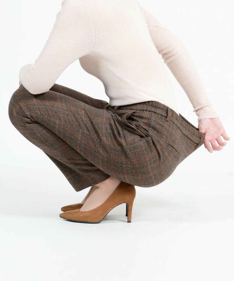 ウエスト総ゴムで楽なはき心地のまま、“前開きにみえる”デザインで、上品きれい見えを叶えます。