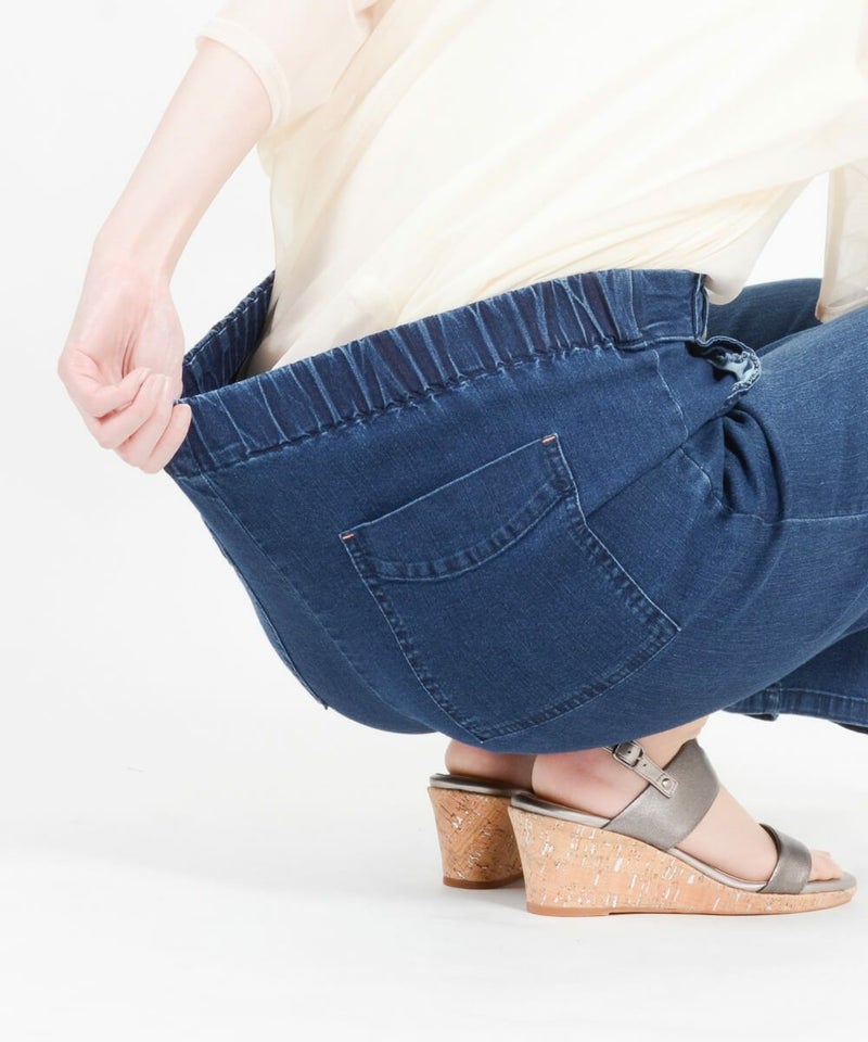 深めの股上で、しゃがんだ時のバックシルエットも安心