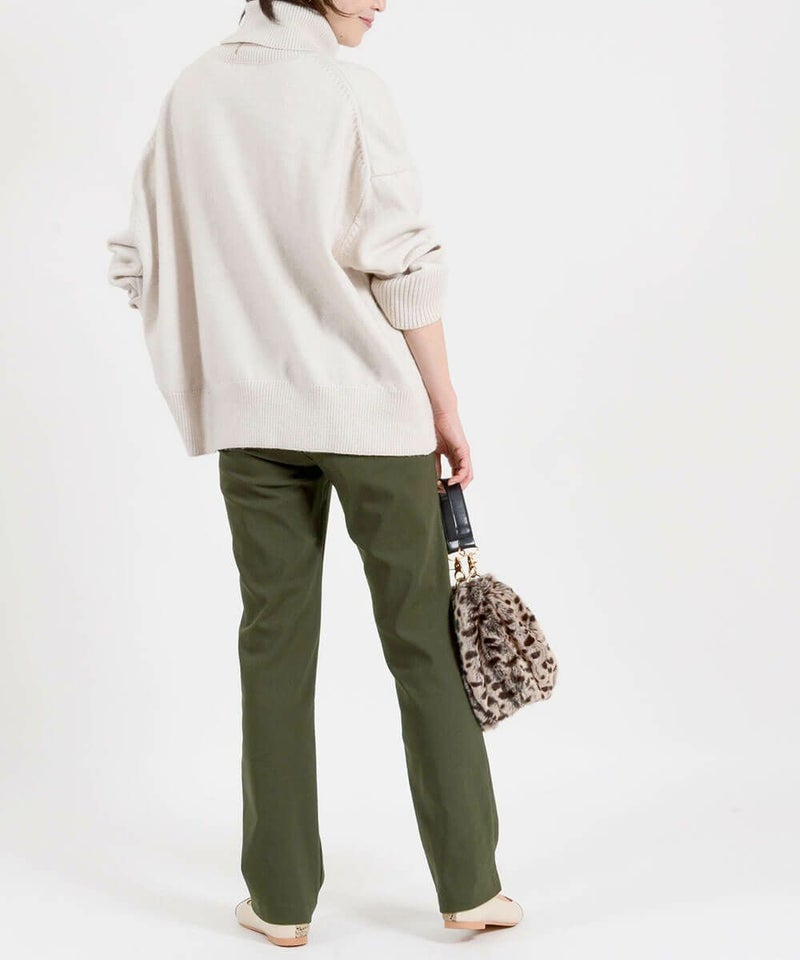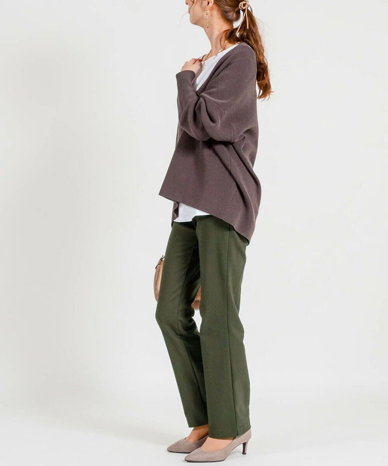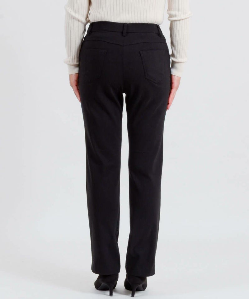 たどり着いたのは上質なストレッチ素材とシルエットから作られるストレートパンツ。当店のパンツは、年齢にかかわらず、女性なら誰もが抱える体型の悩みに寄り添い、 変化しやすい女性の体形にしっかりフィット、サポート。 長時間はいていても疲れにくく、キレイと快適を両立します。