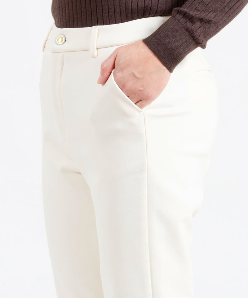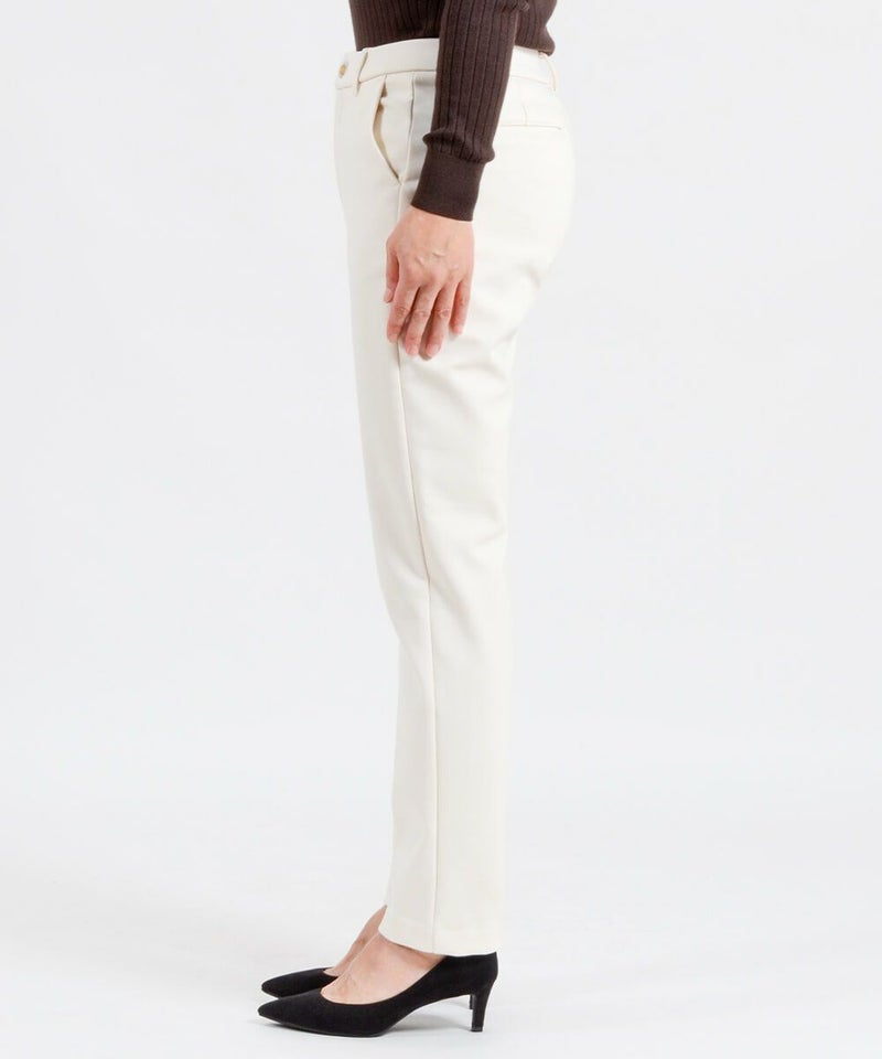 たどり着いたのは上質なストレッチ素材とシルエットから作られるストレートパンツ。当店のパンツは、年齢にかかわらず、女性なら誰もが抱える体型の悩みに寄り添い、 変化しやすい女性の体形にしっかりフィット、サポート。 長時間はいていても疲れにくく、キレイと快適を両立します。