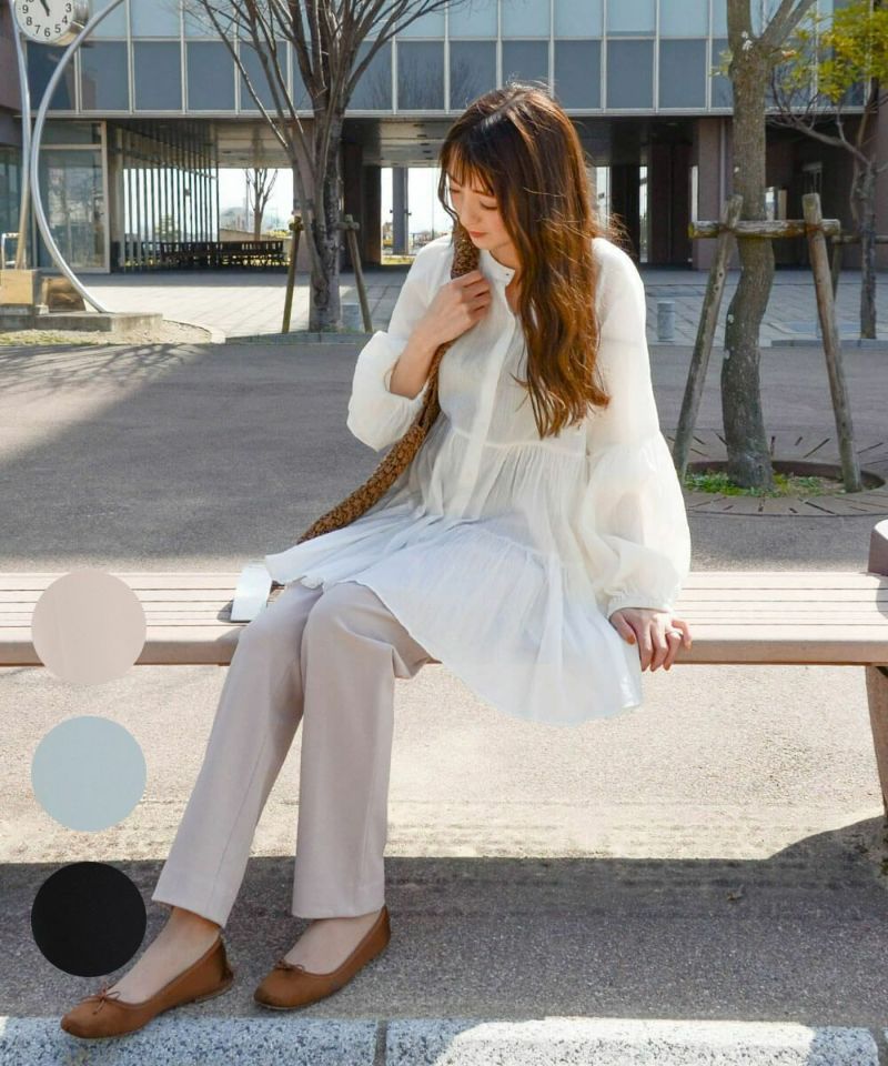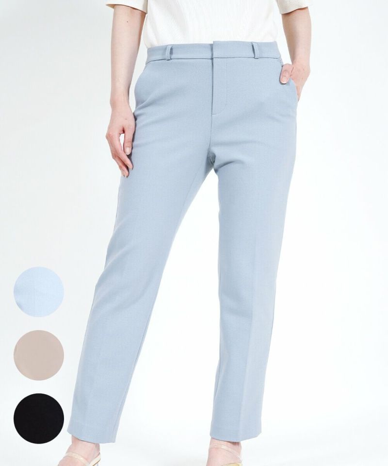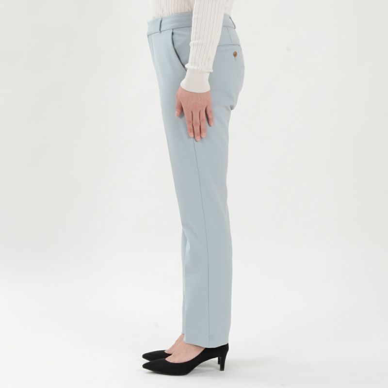 たどり着いたのは上質なストレッチ素材とシルエットから作られるストレートパンツ。当店のパンツは、年齢にかかわらず、女性なら誰もが抱える体型の悩みに寄り添い、 変化しやすい女性の体形にしっかりフィット、サポート。 長時間はいていても疲れにくく、キレイと快適を両立します。