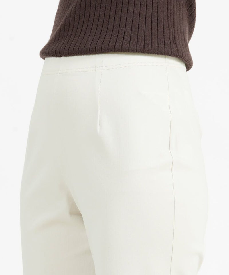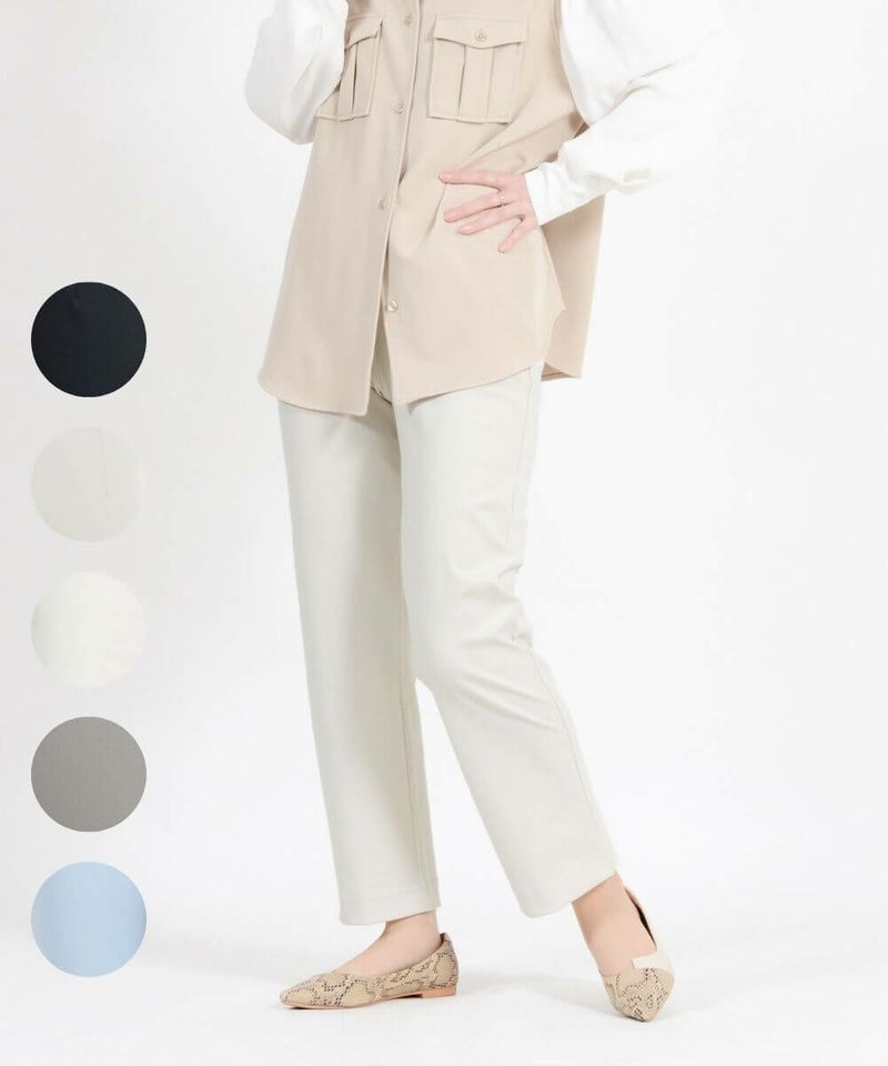 たどり着いたのは上質なストレッチ素材とシルエットから作られるストレートパンツ。当店のパンツは、年齢にかかわらず、女性なら誰もが抱える体型の悩みに寄り添い、 変化しやすい女性の体形にしっかりフィット、サポート。 長時間はいていても疲れにくく、キレイと快適を両立します。