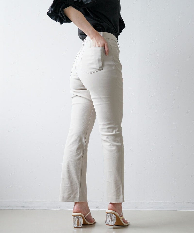 たどり着いたのは上質なストレッチ素材とシルエットから作られるストレートパンツ。当店のパンツは、年齢にかかわらず、女性なら誰もが抱える体型の悩みに寄り添い、 変化しやすい女性の体形にしっかりフィット、サポート。 長時間はいていても疲れにくく、キレイと快適を両立します。