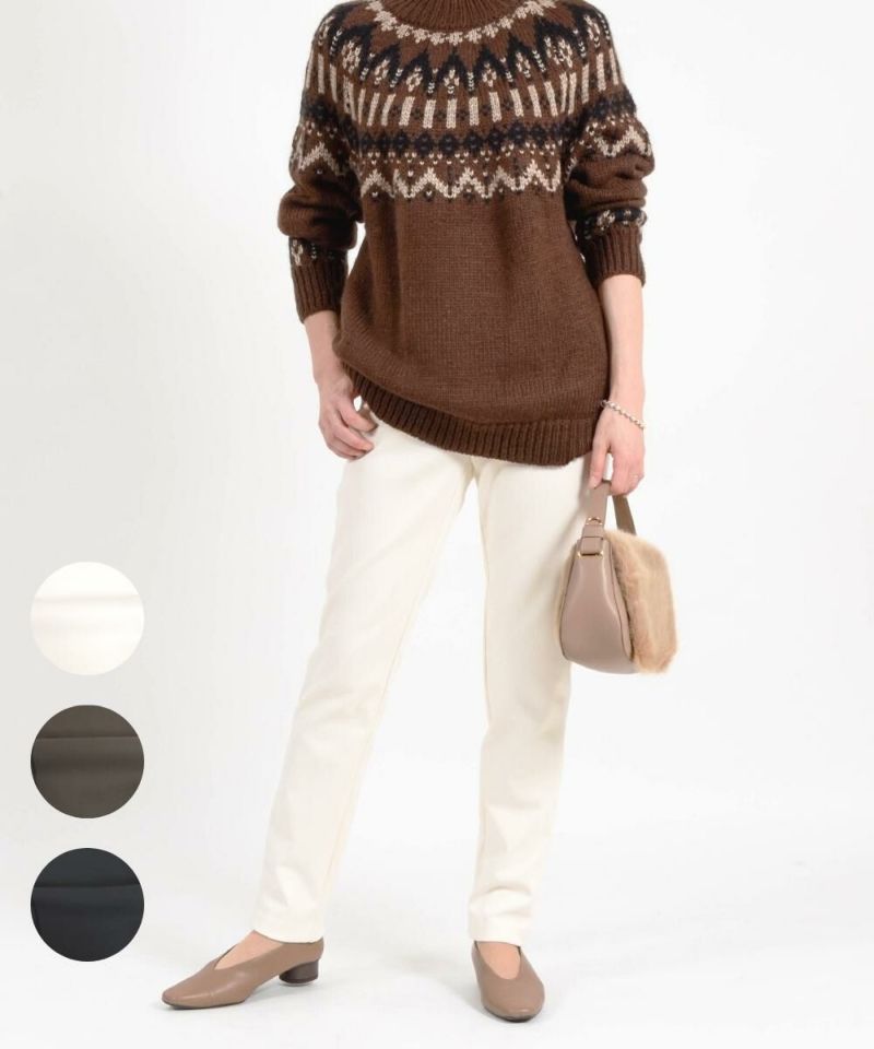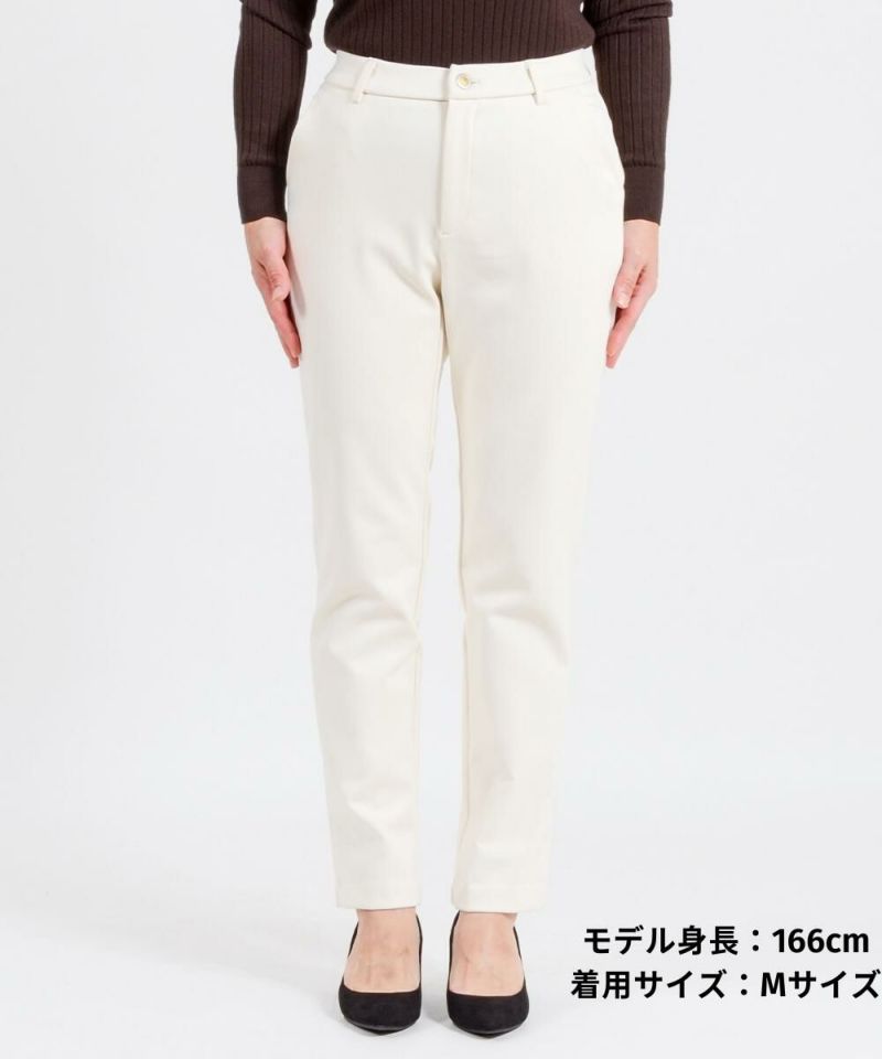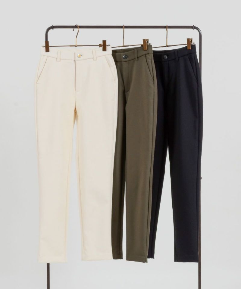 たどり着いたのは上質なストレッチ素材とシルエットから作られるストレートパンツ。当店のパンツは、年齢にかかわらず、女性なら誰もが抱える体型の悩みに寄り添い、 変化しやすい女性の体形にしっかりフィット、サポート。 長時間はいていても疲れにくく、キレイと快適を両立します。