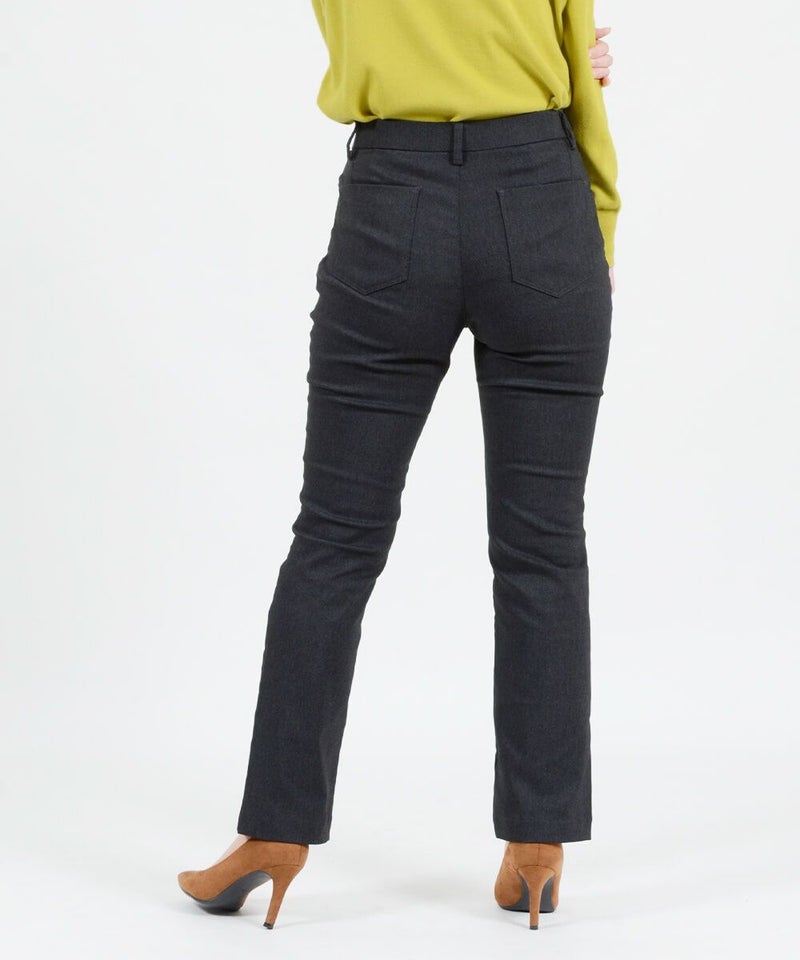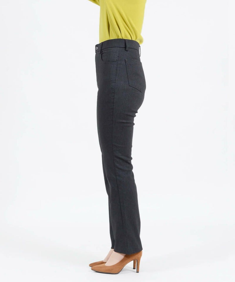 たどり着いたのは上質なストレッチ素材とシルエットから作られるストレートパンツ。当店のパンツは、年齢にかかわらず、女性なら誰もが抱える体型の悩みに寄り添い、 変化しやすい女性の体形にしっかりフィット、サポート。 長時間はいていても疲れにくく、キレイと快適を両立します。