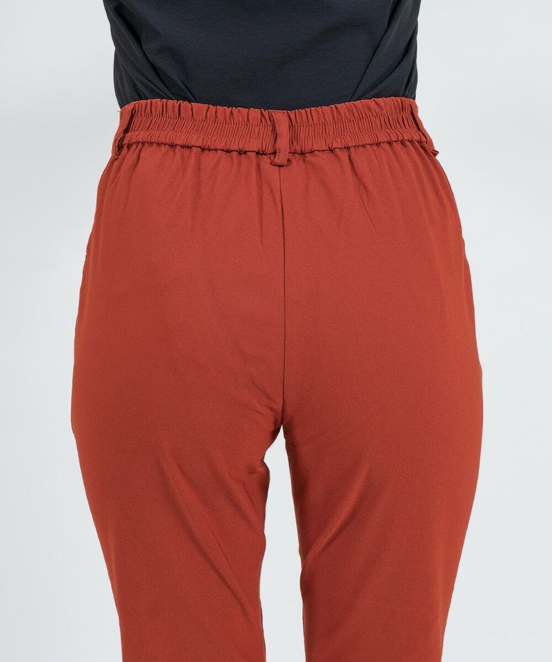 ウエストの後ろにはギャザーを寄せているため、その日の調子によってゆとりが違うウエストにもフィットします。
