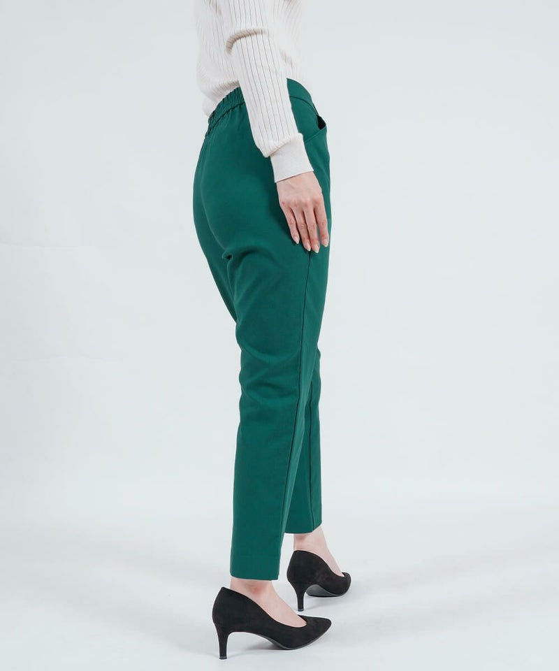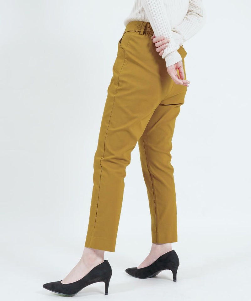 ラクちんながらヒップや太ももまわりはゆったり、足首に向けて細くなるテーパード設計で細見えした美しいシルエットを実現。