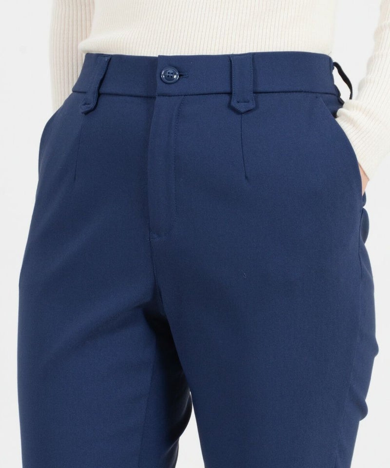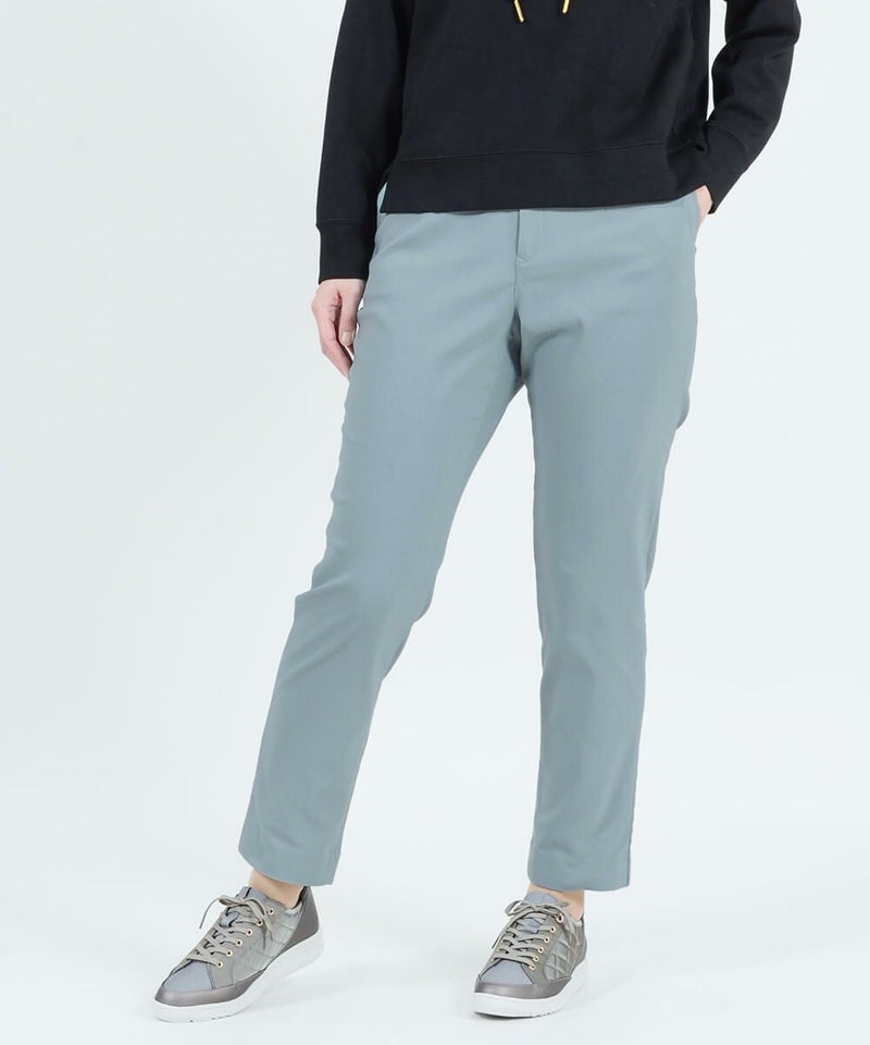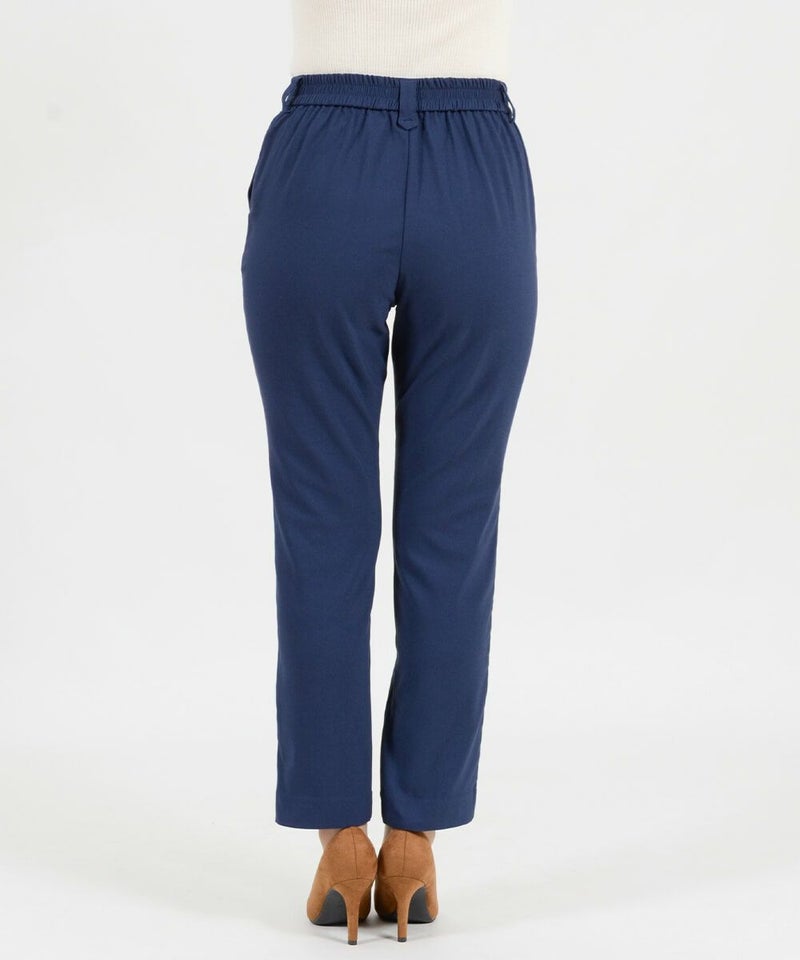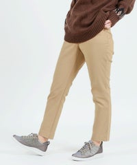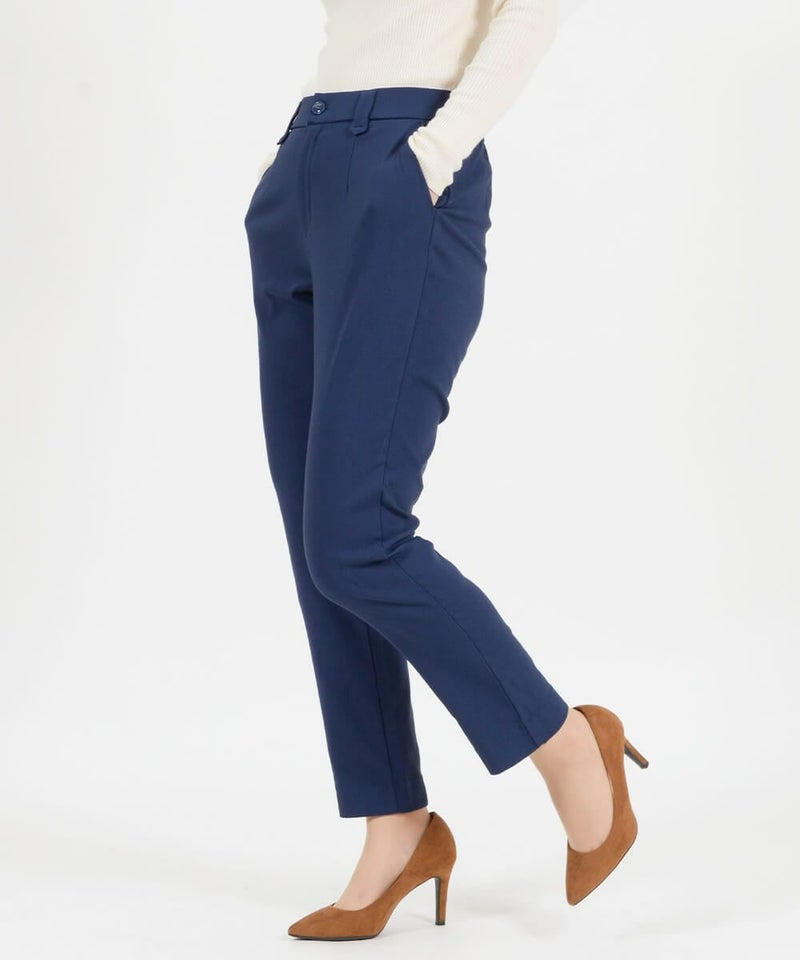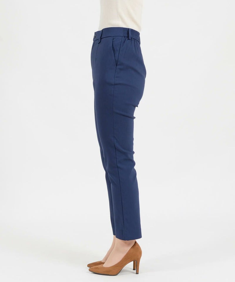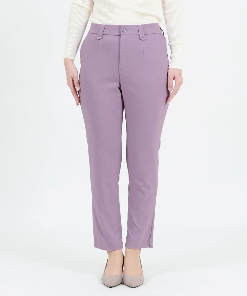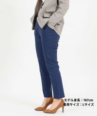 年齢を重ねると気になるウエストやヒップ周りをきれいに魅せるパターン設計で、はき心地と美脚を両立しました。 デザインを極力シンプルに仕上げることで、シルエットの美しさが際立ち優美で気品のある印象に! 足首に向けて細くなるラインでしっかり細見えします。