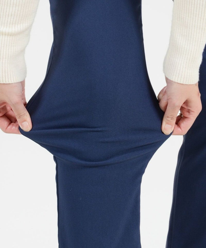 生地自体にストレッチが効いているから、膝の曲げ伸ばしや、しゃがんでもグーンと伸びてはき心地も楽ラク。 きれいなシルエットをキープしつつもラクなはき心地で、一日中快適に過ごすことができますよ。