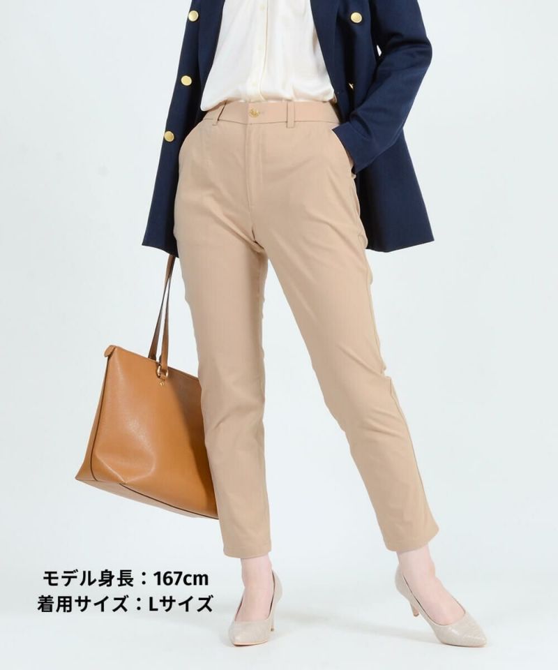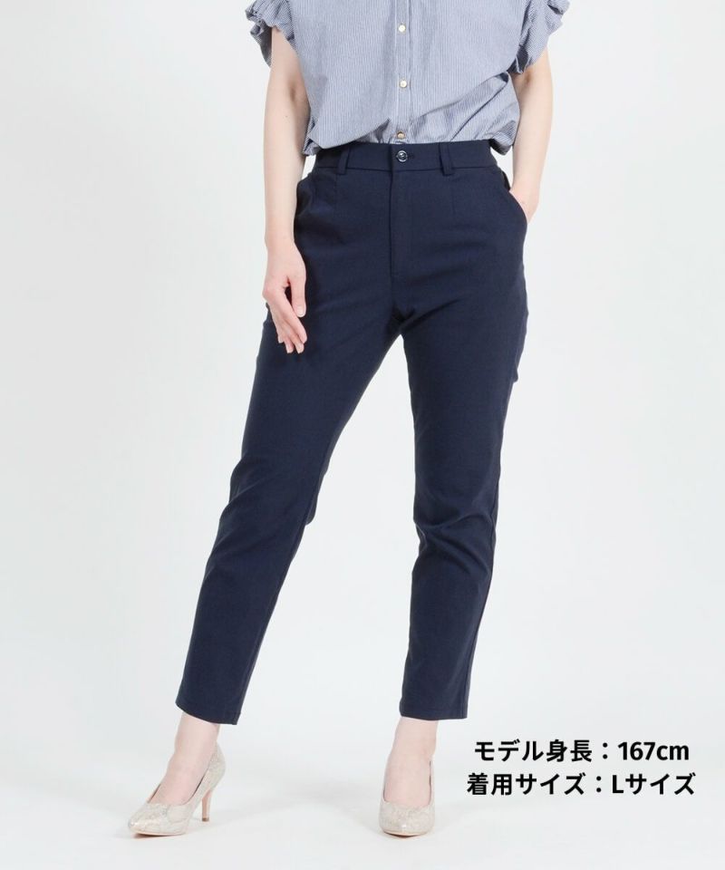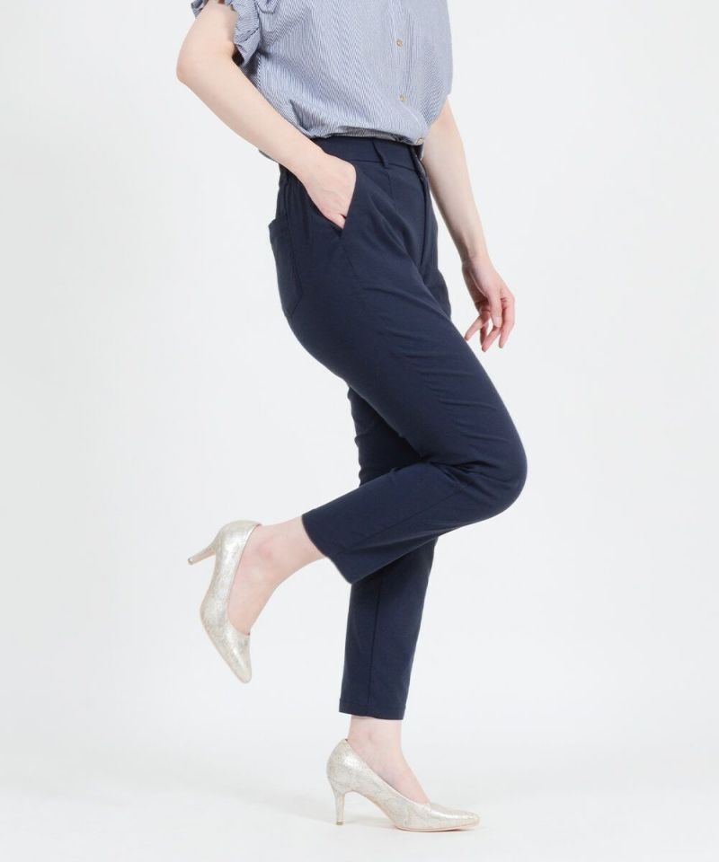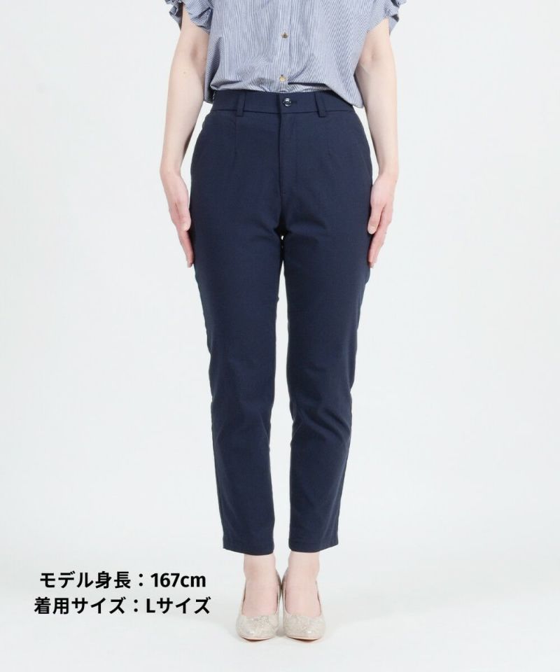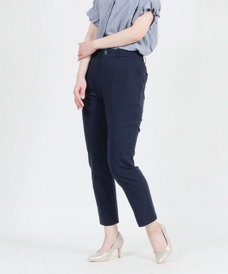 [SALE] きちんとラクでムレない!麻入りストレッチテーパードパンツ 股下66cm
