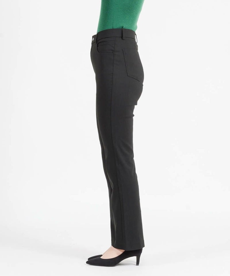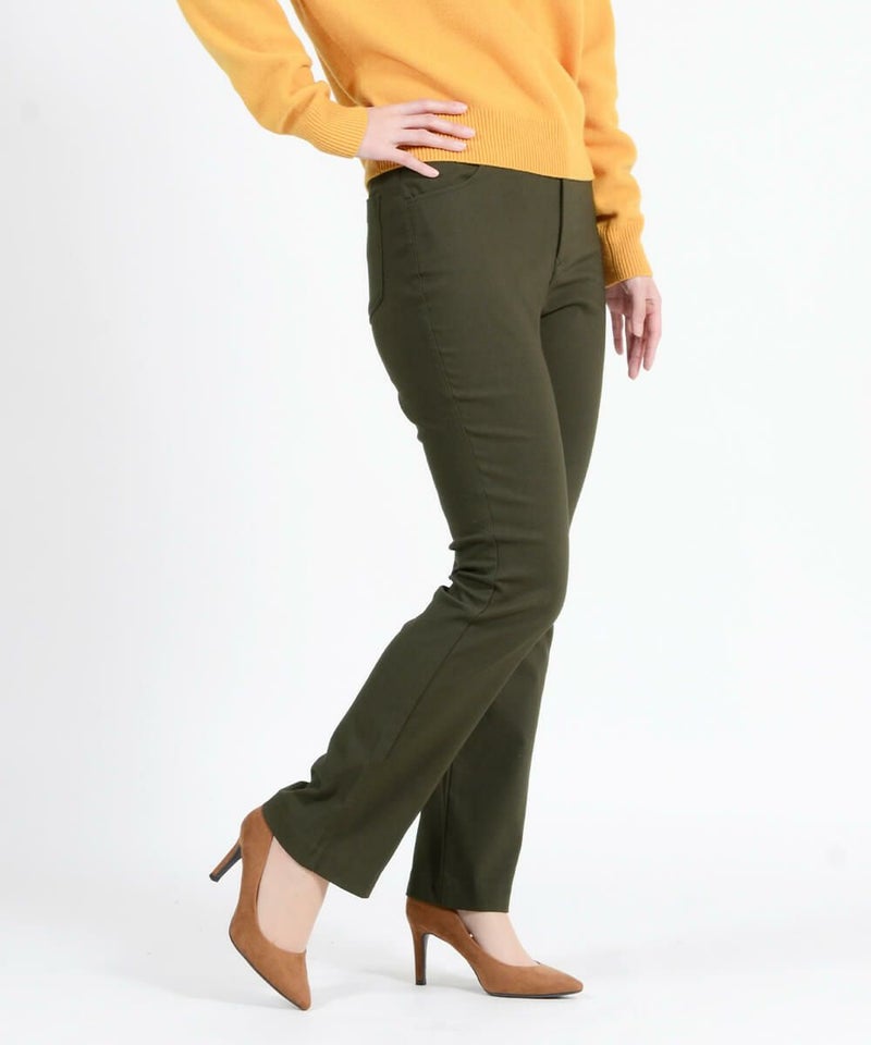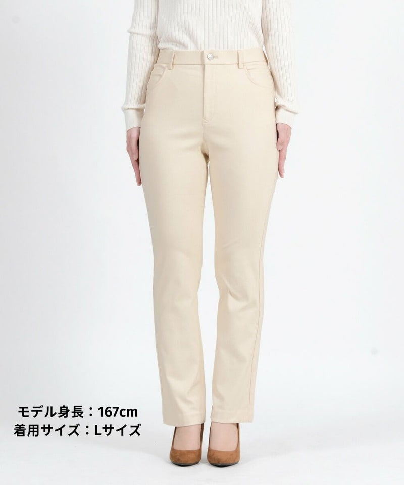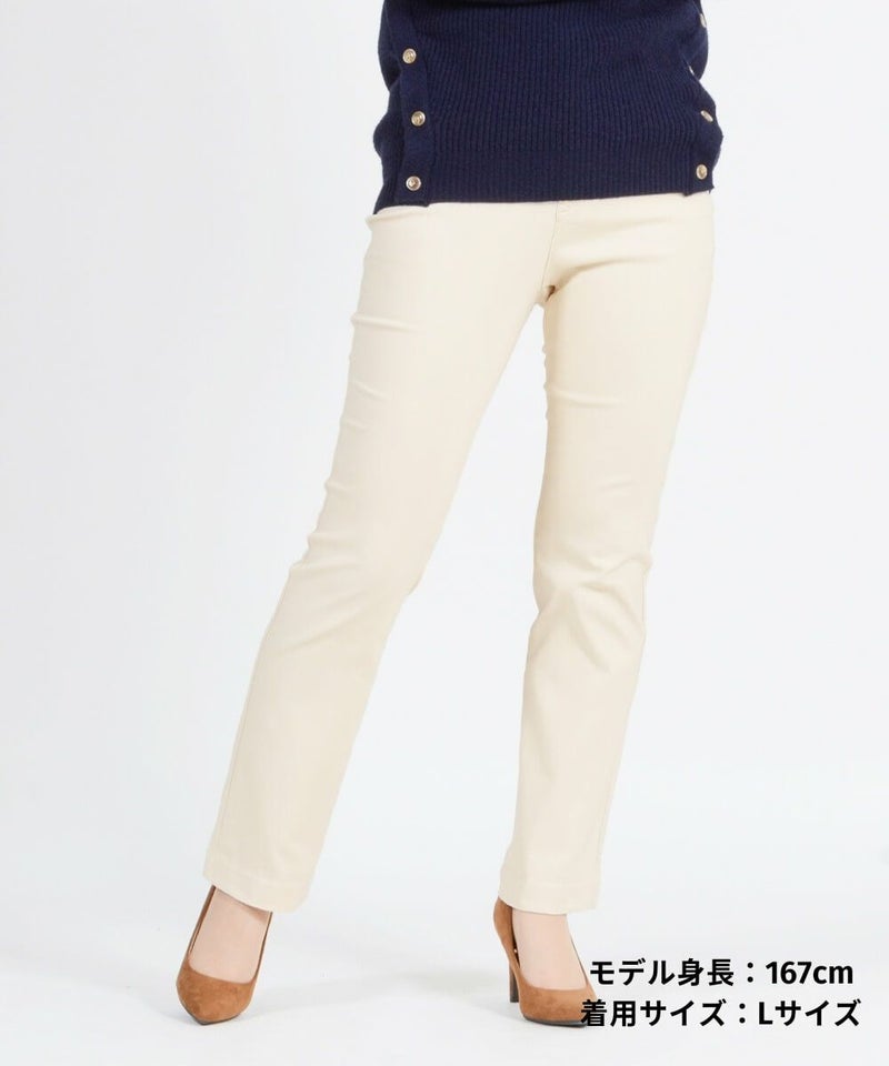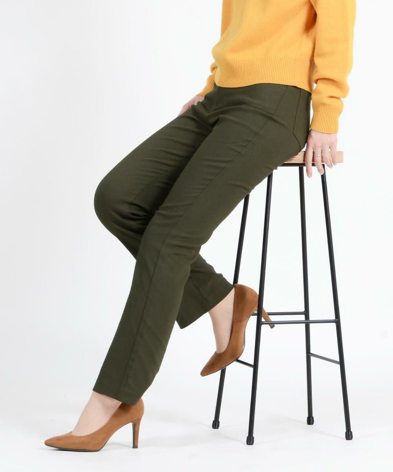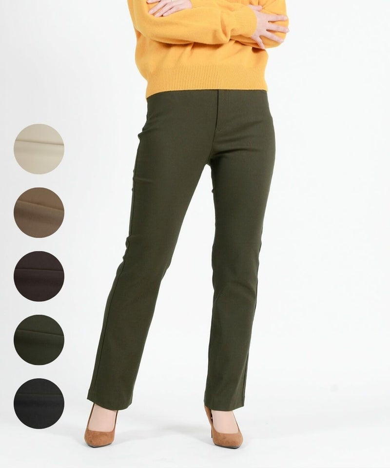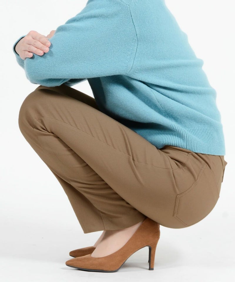 たどり着いたのは上質なストレッチ素材とシルエットから作られるストレートパンツ。当店のパンツは、年齢にかかわらず、女性なら誰もが抱える体型の悩みに寄り添い、 変化しやすい女性の体形にしっかりフィット、サポート。 長時間はいていても疲れにくく、キレイと快適を両立します。