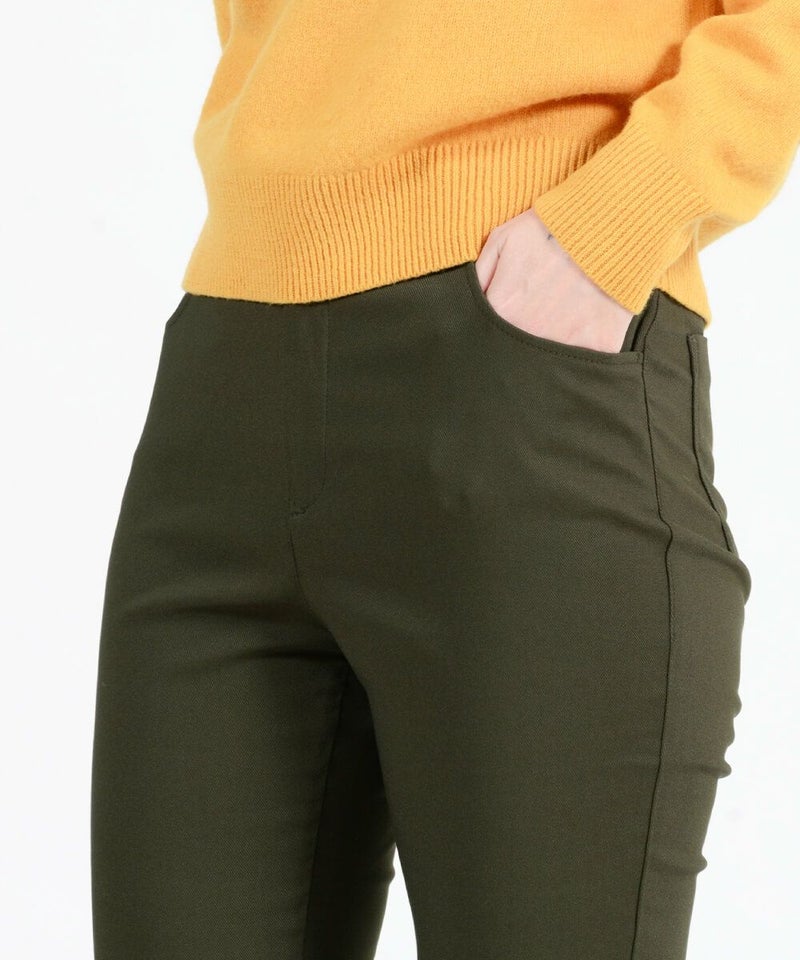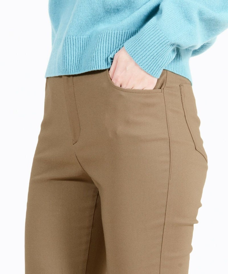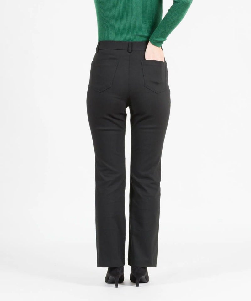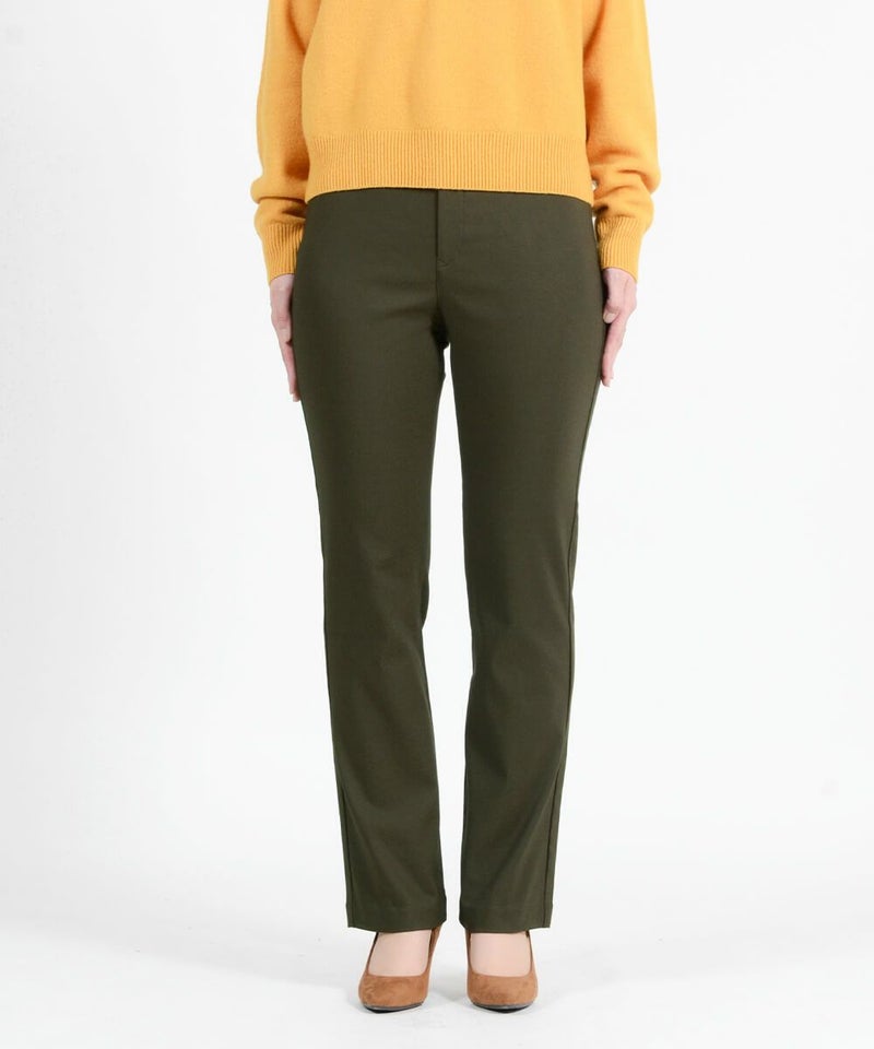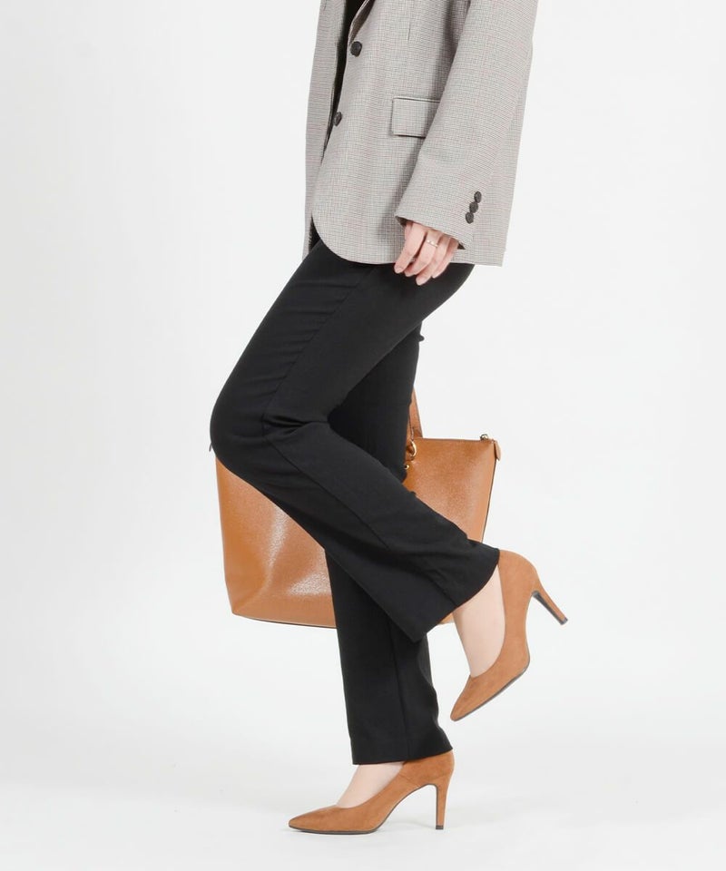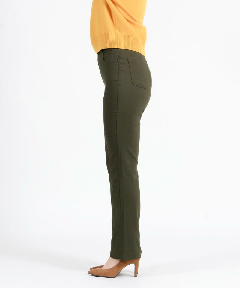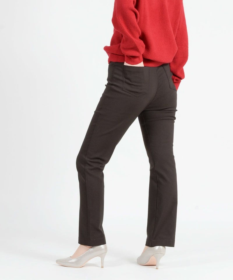 たどり着いたのは上質なストレッチ素材とシルエットから作られるストレートパンツ。当店のパンツは、年齢にかかわらず、女性なら誰もが抱える体型の悩みに寄り添い、 変化しやすい女性の体形にしっかりフィット、サポート。 長時間はいていても疲れにくく、キレイと快適を両立します。