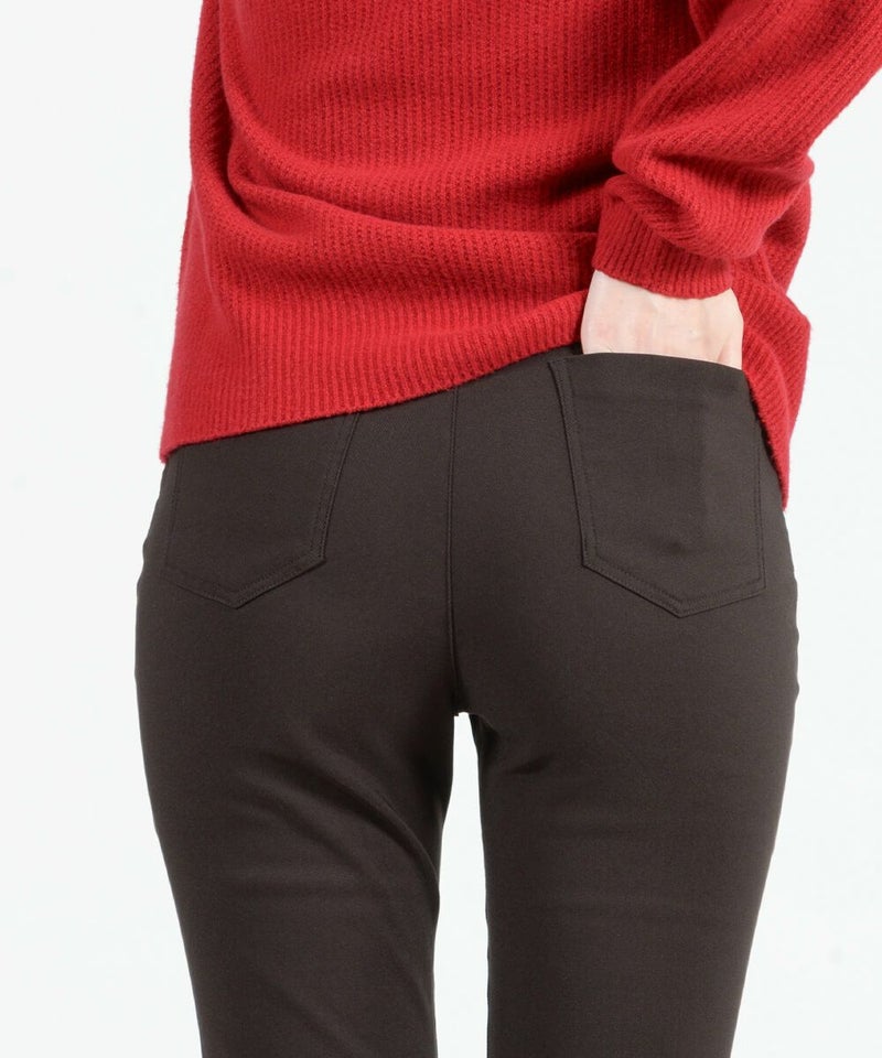 着ぶくれしがちな冬の裏起毛パンツですが、このパンツは脚の形に馴染むようなスッキリとした細身シルエット。