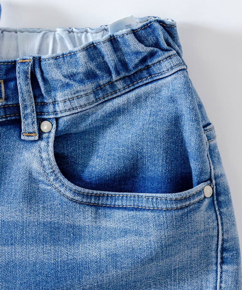 ウエストはゴム仕様でデニム特有の窮屈さもありません。