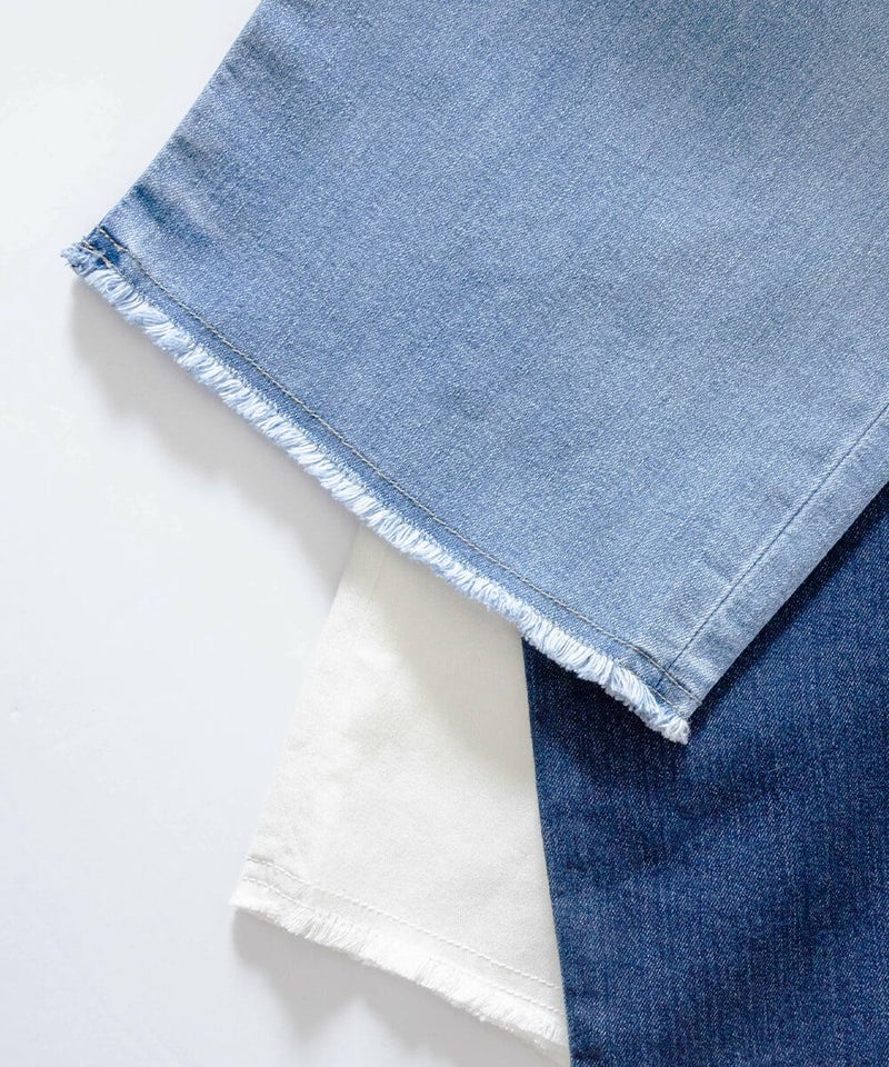 ワンパターンになりがちな定番デニムを裾カットフリンジでアップデート! 流行のトップスとも合わせやすく、穿くだけでトレンド感たっぷりな着こなしに変身します。