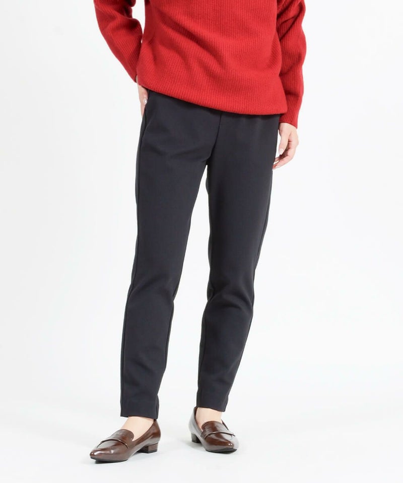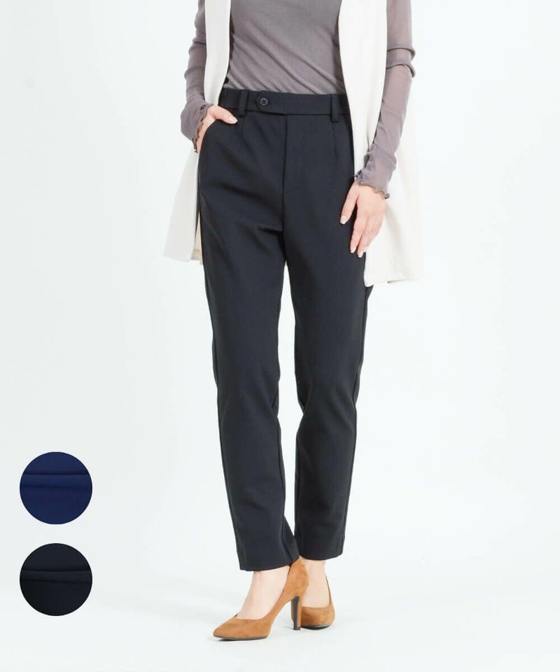 たどり着いたのは上質なストレッチ素材とシルエットから作られるストレートパンツ。当店のパンツは、年齢にかかわらず、女性なら誰もが抱える体型の悩みに寄り添い、 変化しやすい女性の体形にしっかりフィット、サポート。 長時間はいていても疲れにくく、キレイと快適を両立します。