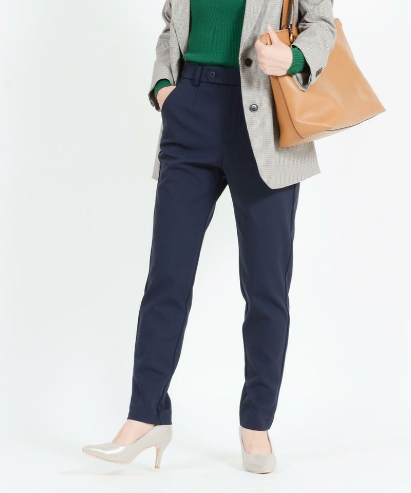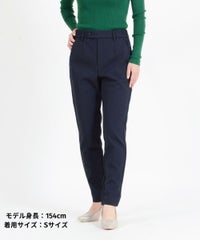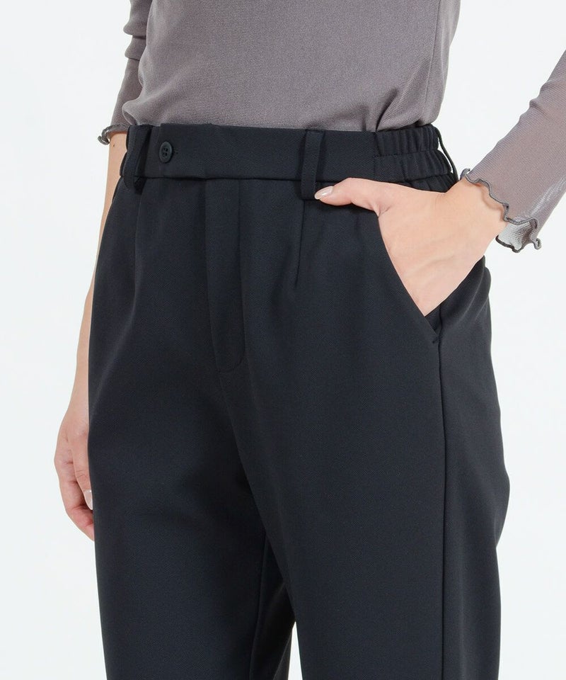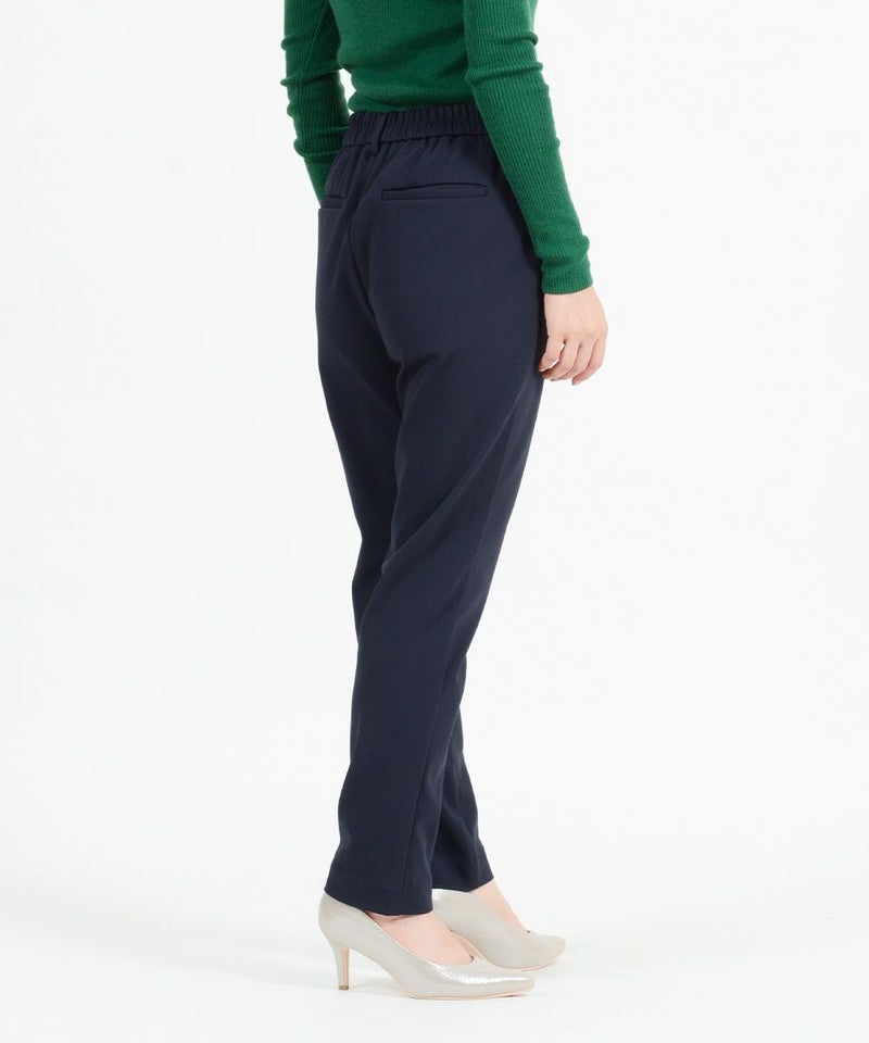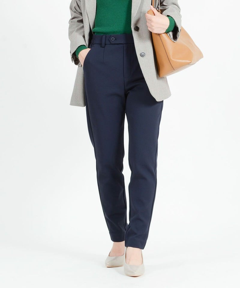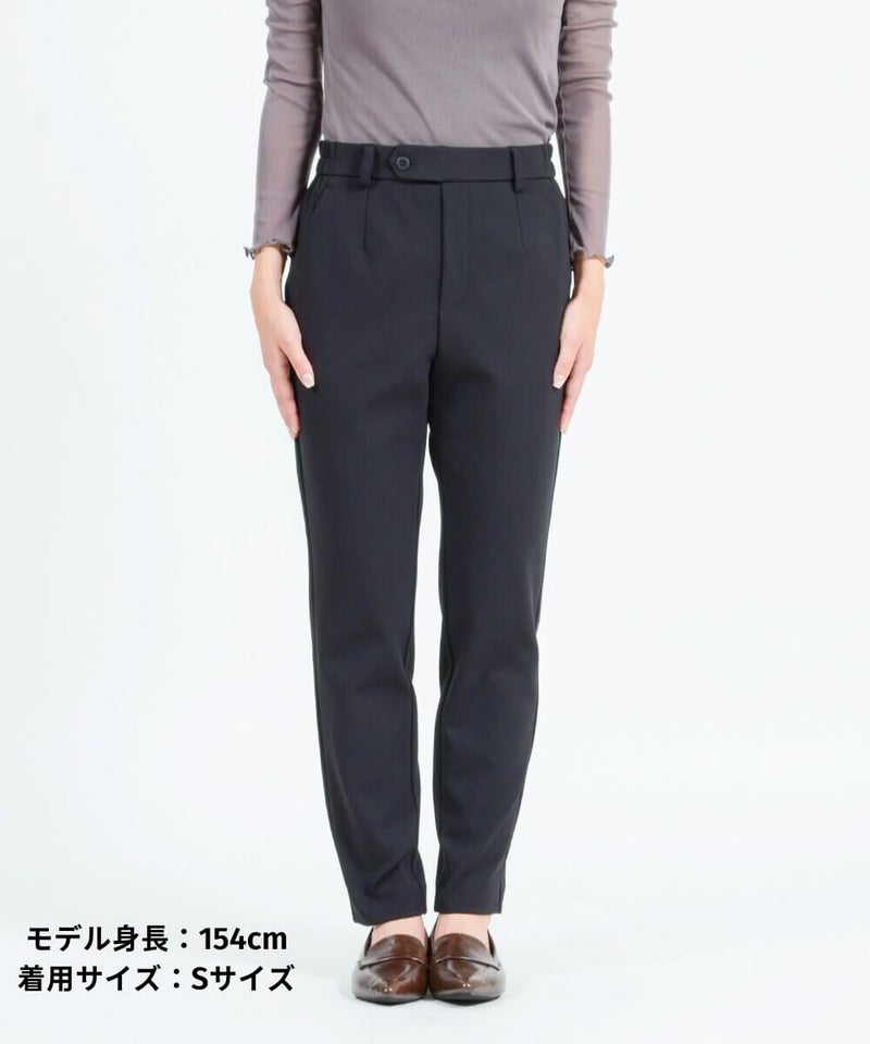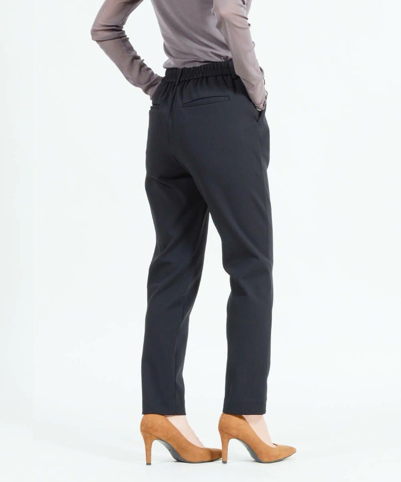 細身のテーパードながらも、深めの股上や前身のダーツで腰回りはゆとりがあり、窮屈感なく全体のラインをスッキリ見せる技ありシルエット。