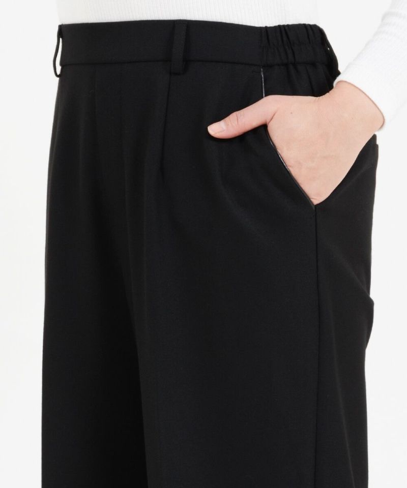 後ろウエストゴムできれいめながら穿き心地の良いワイドパンツ。