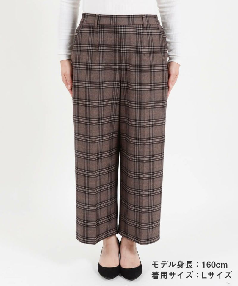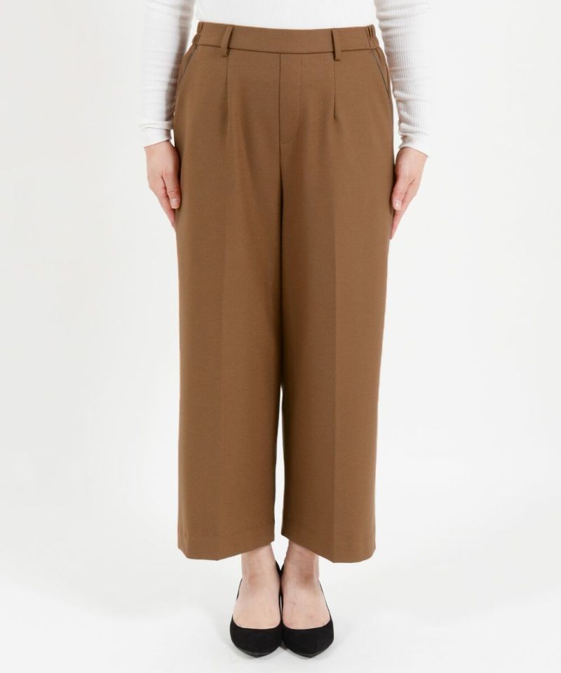 [SALE][テレビドラマ着用] きれいめ両面起毛ワイドパンツ 股下60cm