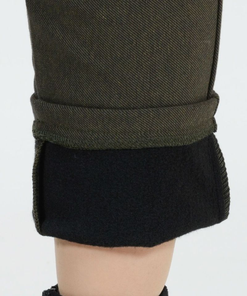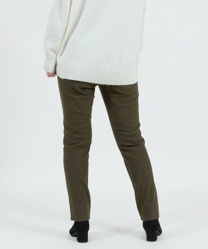 生地の厚みを調整することで、起毛パンツにありがちな着膨れを解消し美しいシルエットに仕上げました。