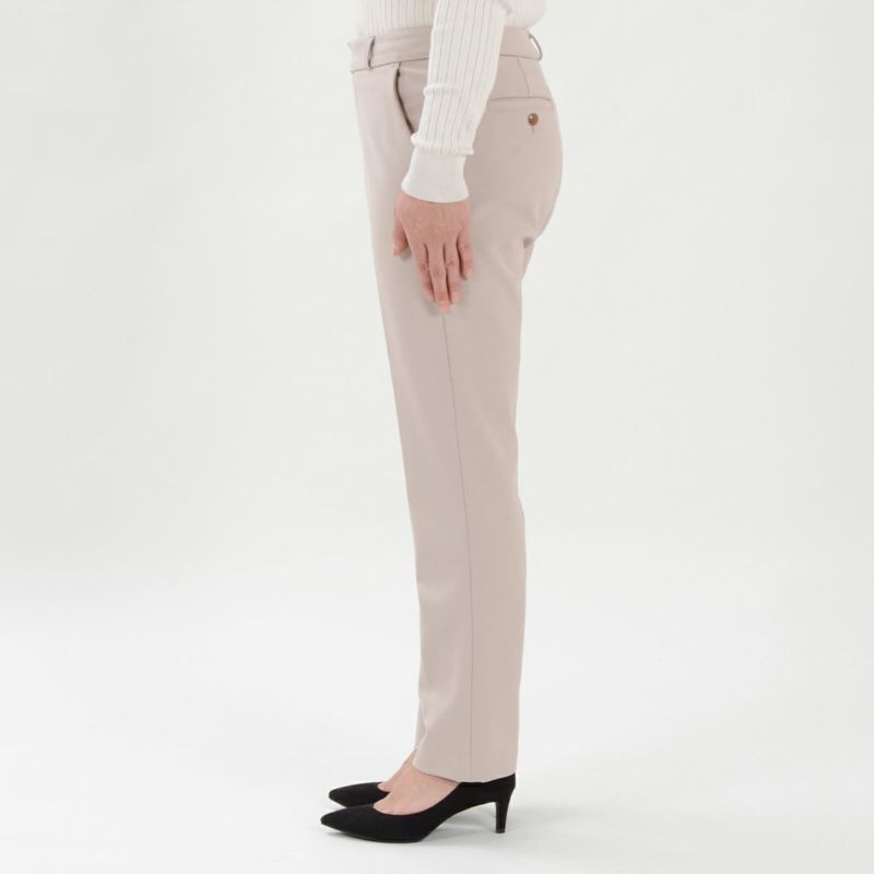 たどり着いたのは上質なストレッチ素材とシルエットから作られるストレートパンツ。当店のパンツは、年齢にかかわらず、女性なら誰もが抱える体型の悩みに寄り添い、 変化しやすい女性の体形にしっかりフィット、サポート。 長時間はいていても疲れにくく、キレイと快適を両立します。