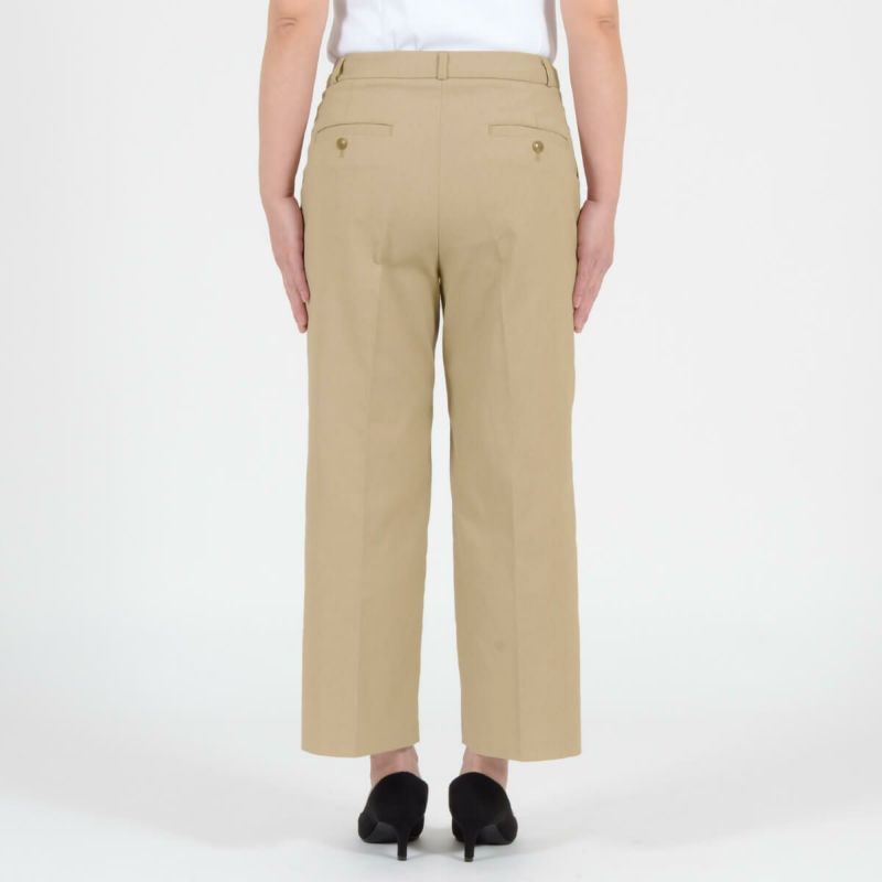 たどり着いたのは上質なストレッチ素材とシルエットから作られるストレートパンツ。当店のパンツは、年齢にかかわらず、女性なら誰もが抱える体型の悩みに寄り添い、 変化しやすい女性の体形にしっかりフィット、サポート。 長時間はいていても疲れにくく、キレイと快適を両立します。
