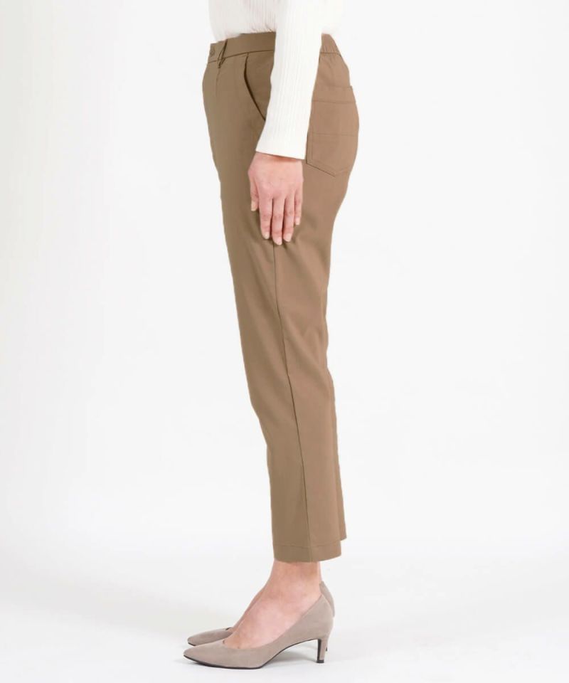 たどり着いたのは上質なストレッチ素材とシルエットから作られるストレートパンツ。当店のパンツは、年齢にかかわらず、女性なら誰もが抱える体型の悩みに寄り添い、 変化しやすい女性の体形にしっかりフィット、サポート。 長時間はいていても疲れにくく、キレイと快適を両立します。
