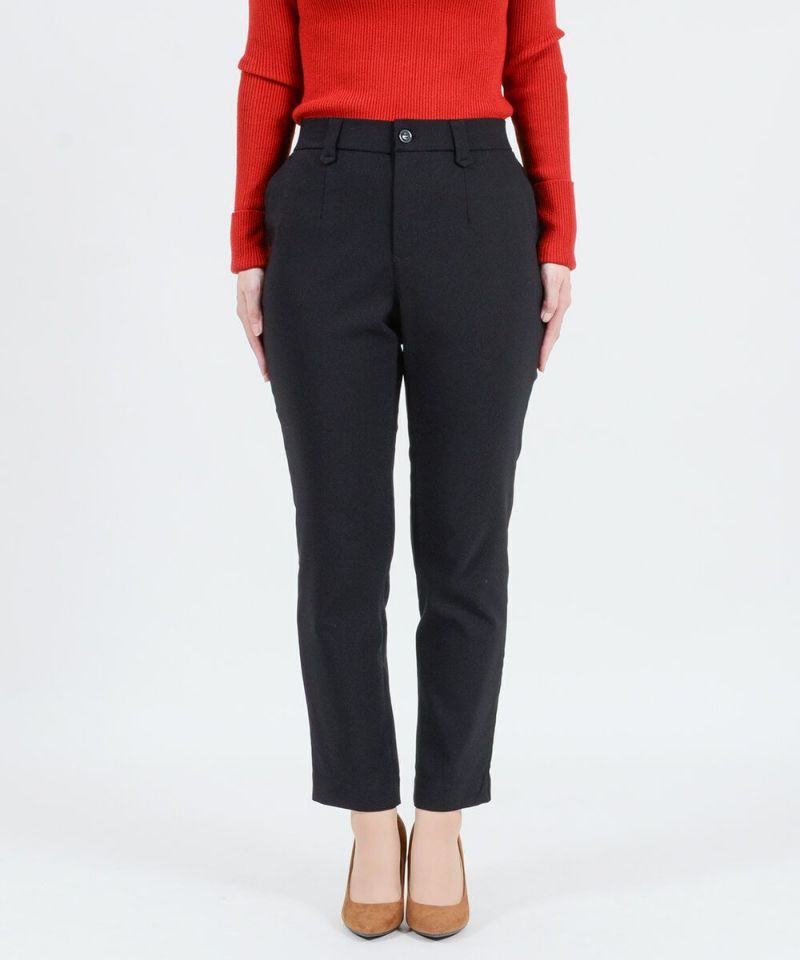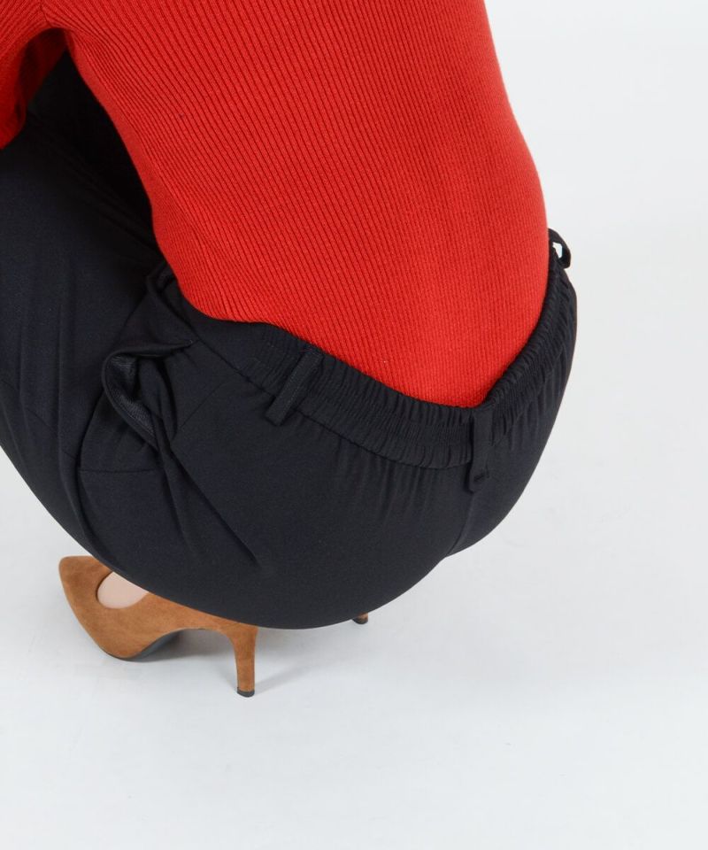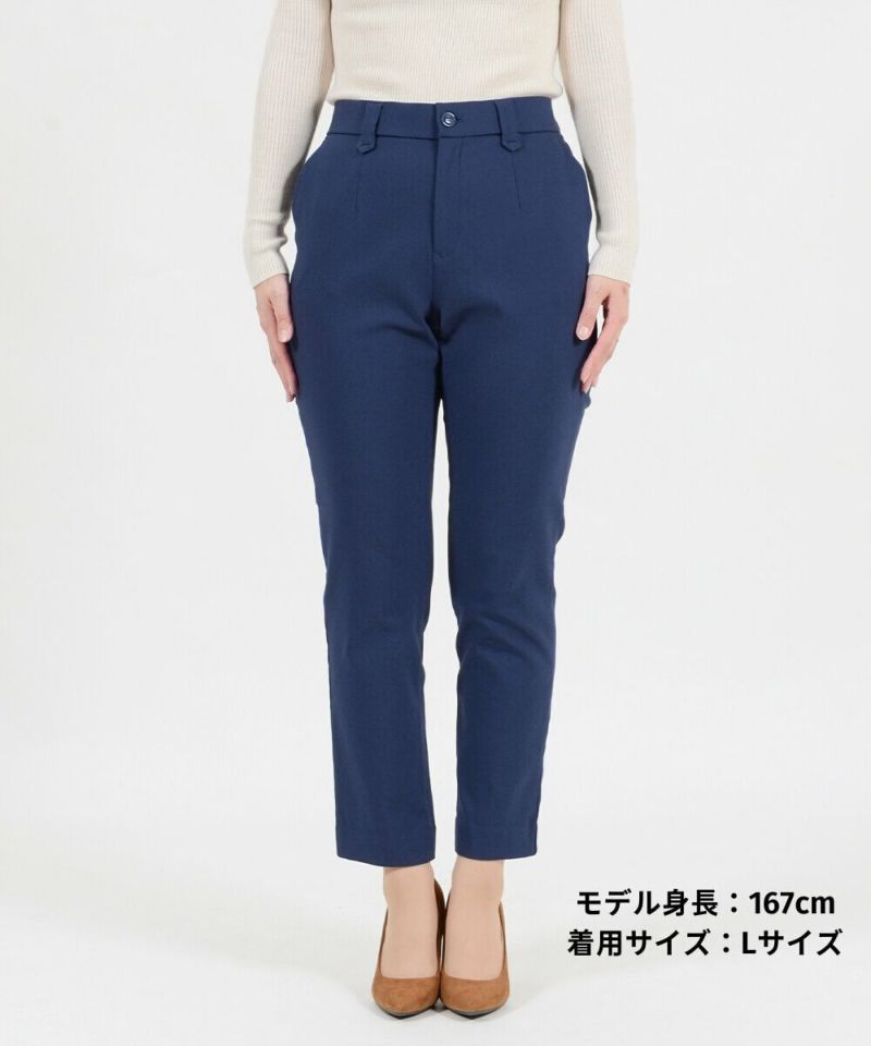 年齢を重ねると気になるウエストやヒップ周りをきれいに魅せるパターン設計で、はき心地と美脚を両立しました。 デザインを極力シンプルに仕上げることで、シルエットの美しさが際立ち優美で気品のある印象に! 足首に向けて細くなるラインでしっかり細見えします。