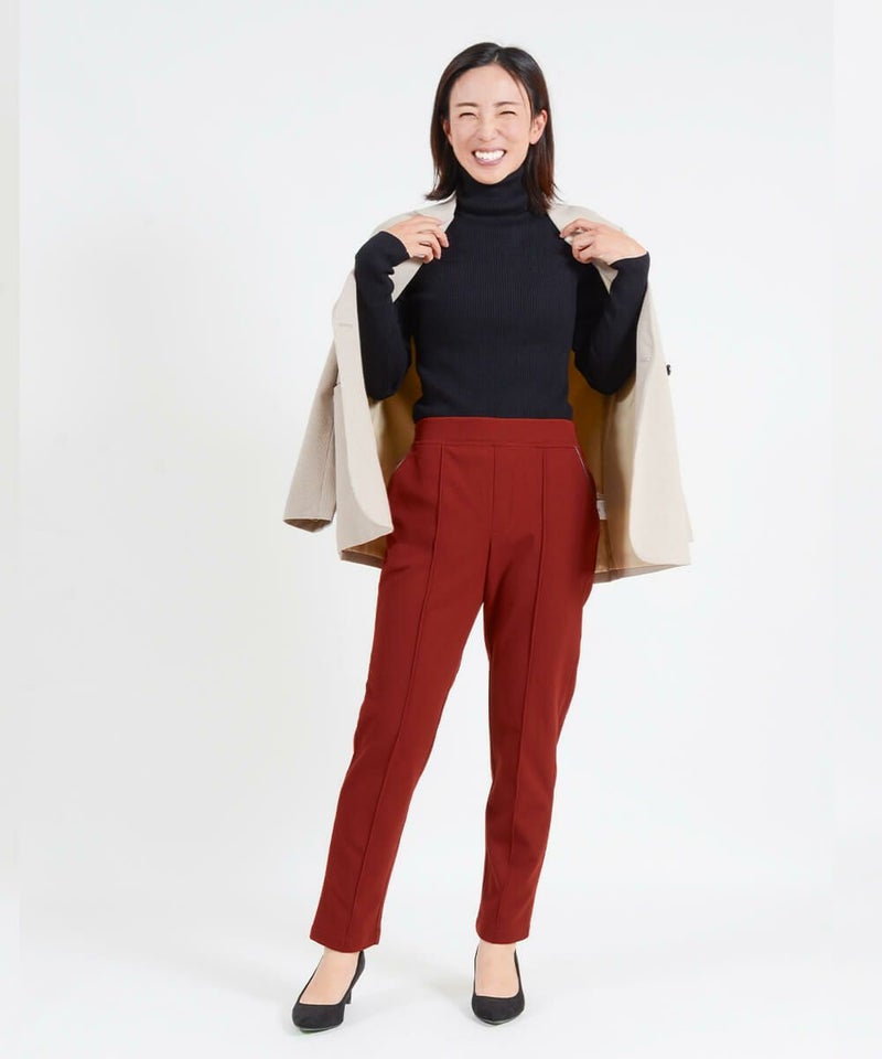 暖かさ優先のパンツは、生地が分厚くどうしても着ぶくれしがち。そこで、“暖かい”と“美脚”を両立する、裏起毛ピンタックパンツをつくりました。