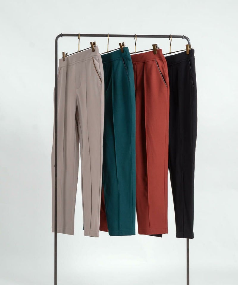 たどり着いたのは上質なストレッチ素材とシルエットから作られるストレートパンツ。当店のパンツは、年齢にかかわらず、女性なら誰もが抱える体型の悩みに寄り添い、 変化しやすい女性の体形にしっかりフィット、サポート。 長時間はいていても疲れにくく、キレイと快適を両立します。