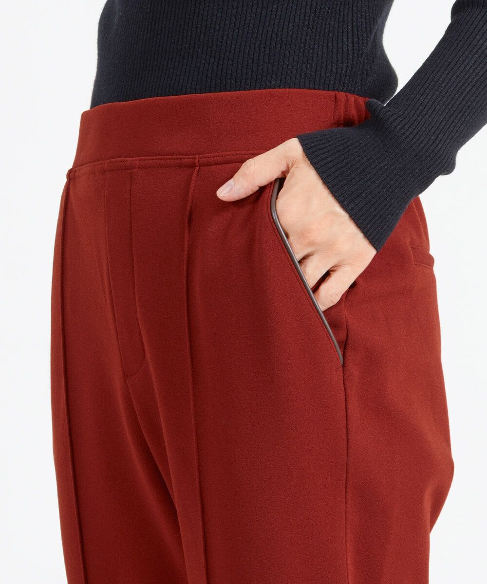 暖かさ優先のパンツは、生地が分厚くどうしても着ぶくれしがち。そこで、“暖かい”と“美脚”を両立する、裏起毛ピンタックパンツをつくりました。