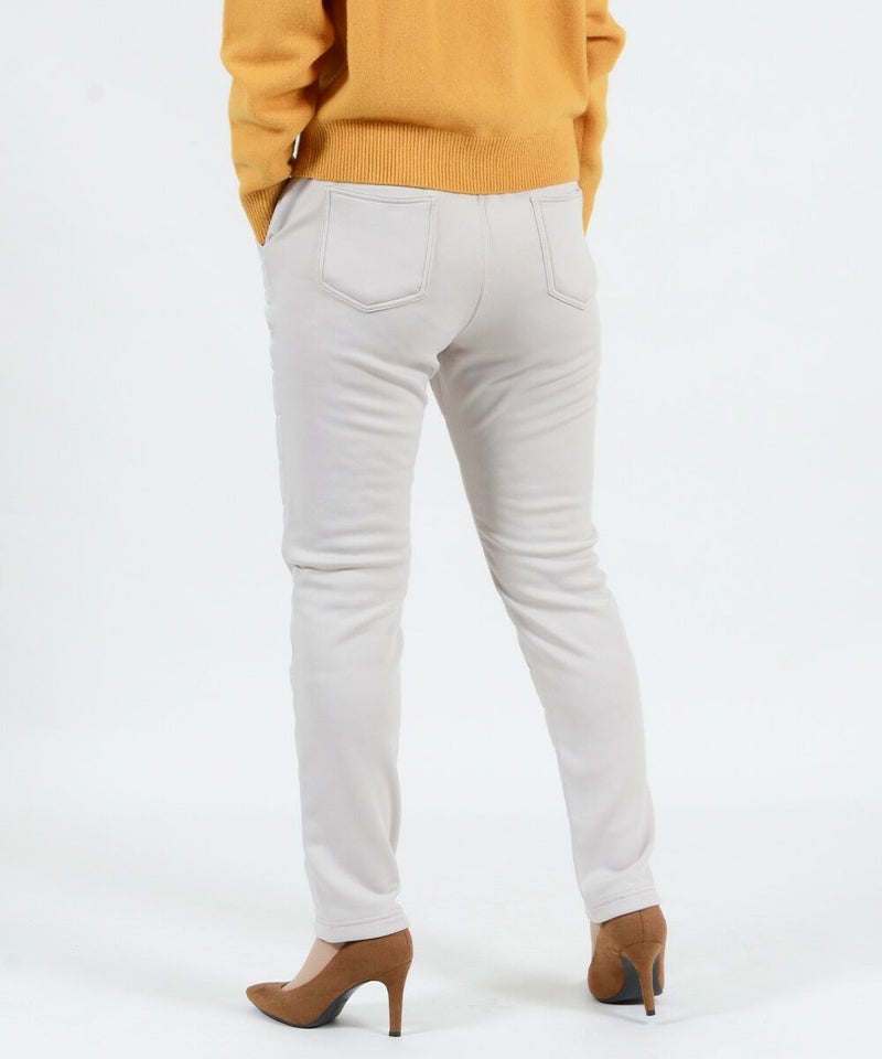 後身頃には、脚を通した瞬間からしっかり暖かく、そして裏起毛より毛足の長く暖かさを感じる裏シャギー素材を使用。