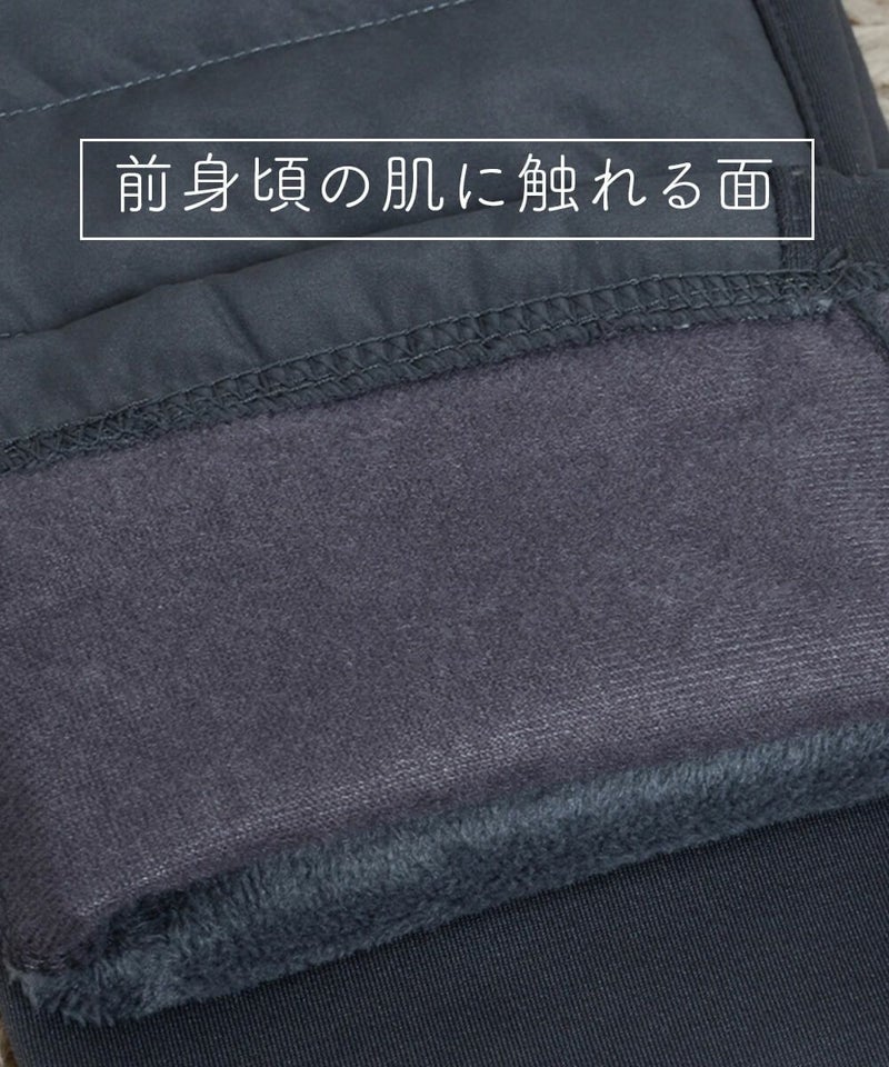 前身頃はタフタ生地+ダウン、後身頃には毛足の長い裏シャギー素材を使用し、高級毛布に脚を入れているような肌触りかつポッカポカのはき心地です。