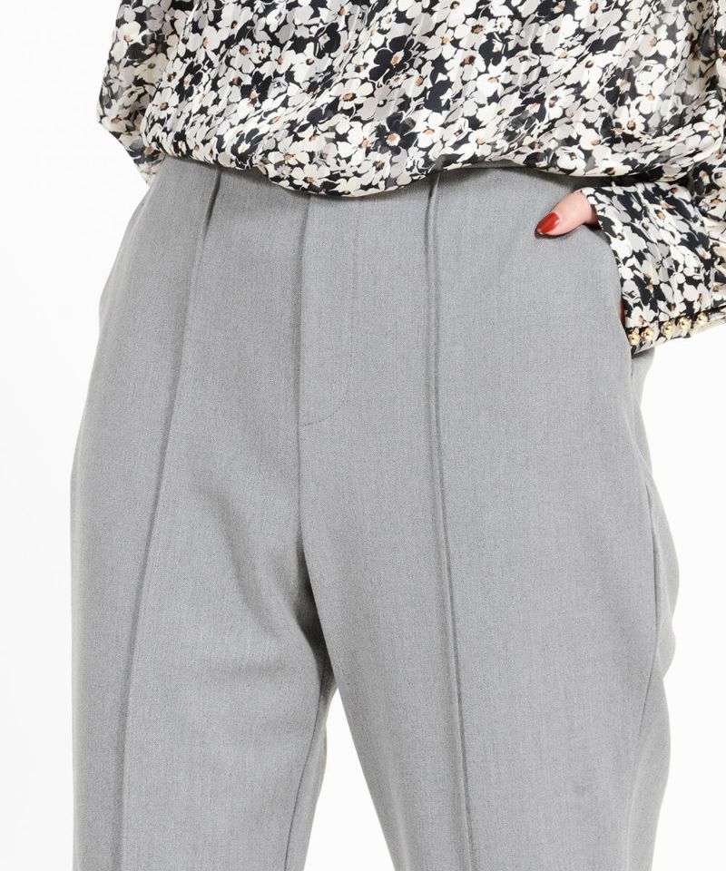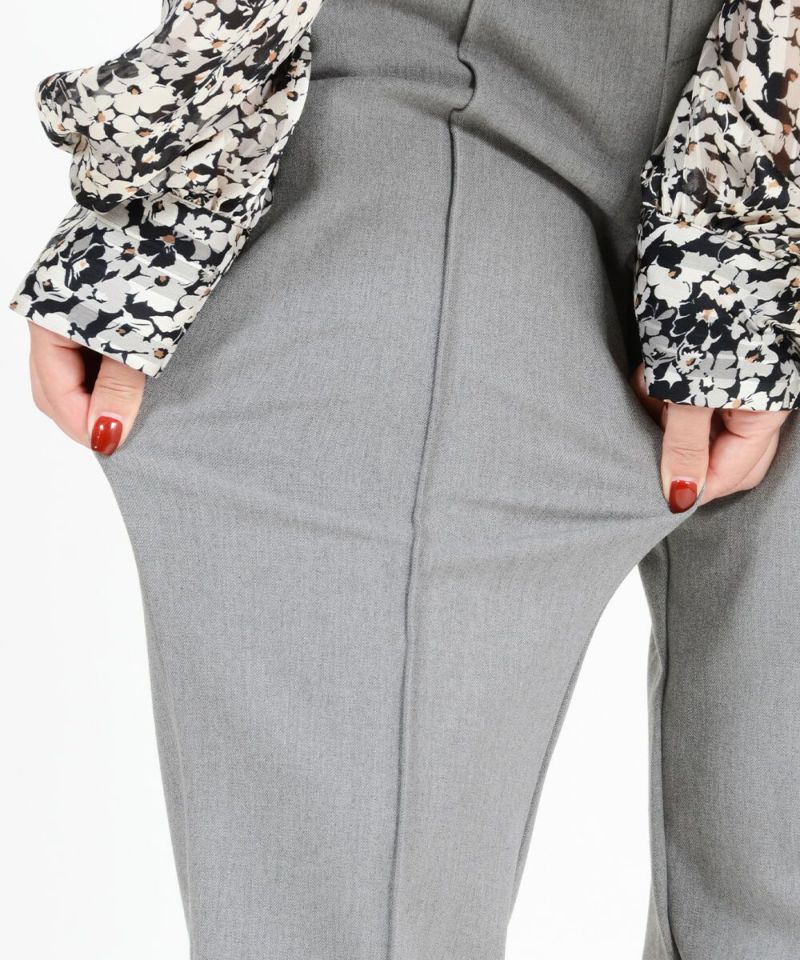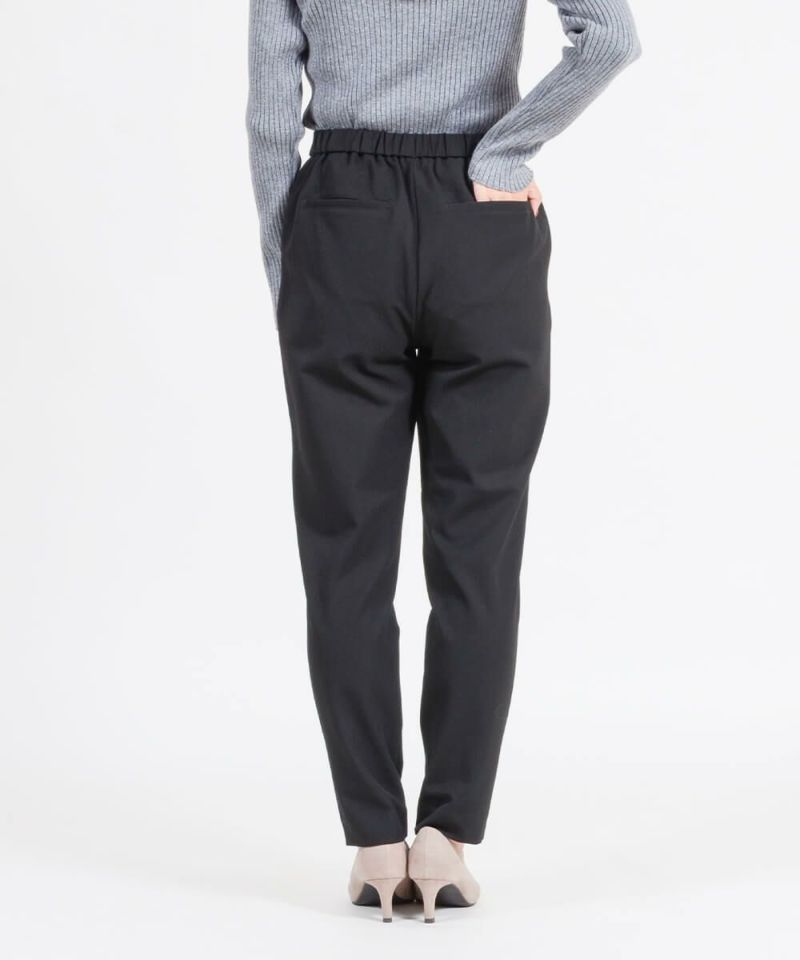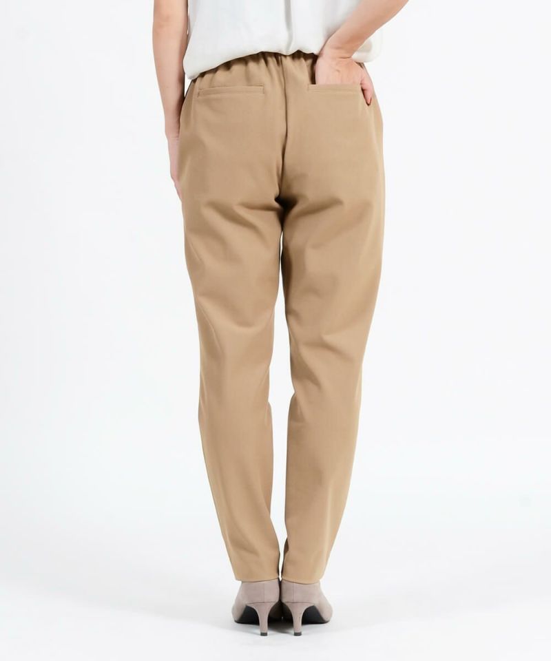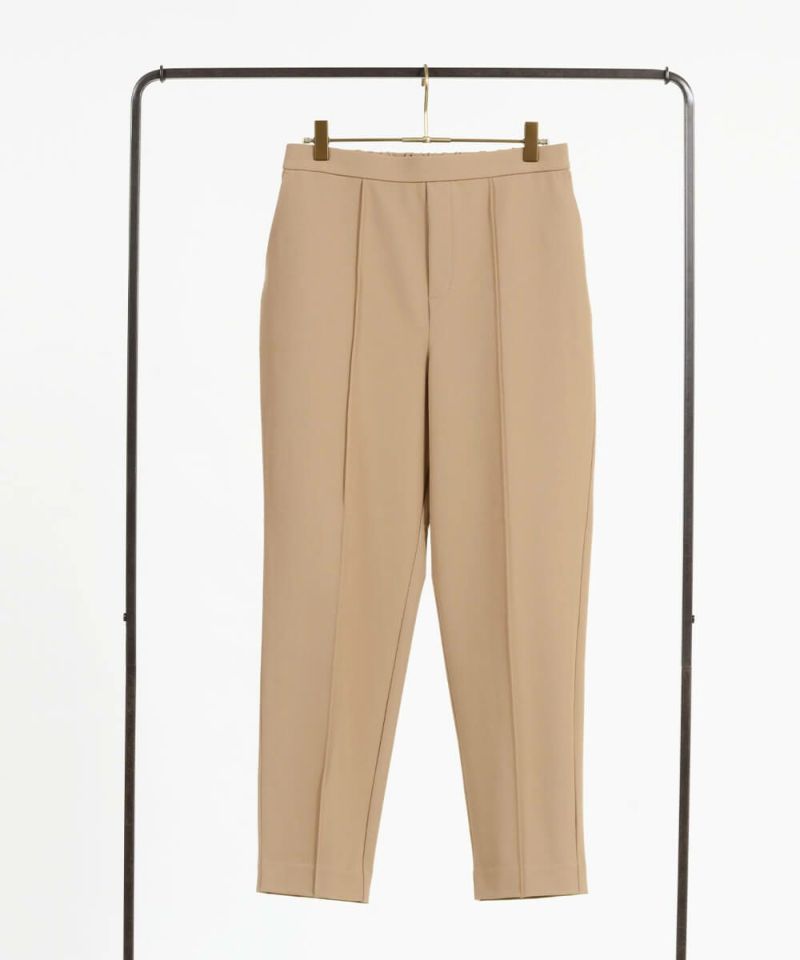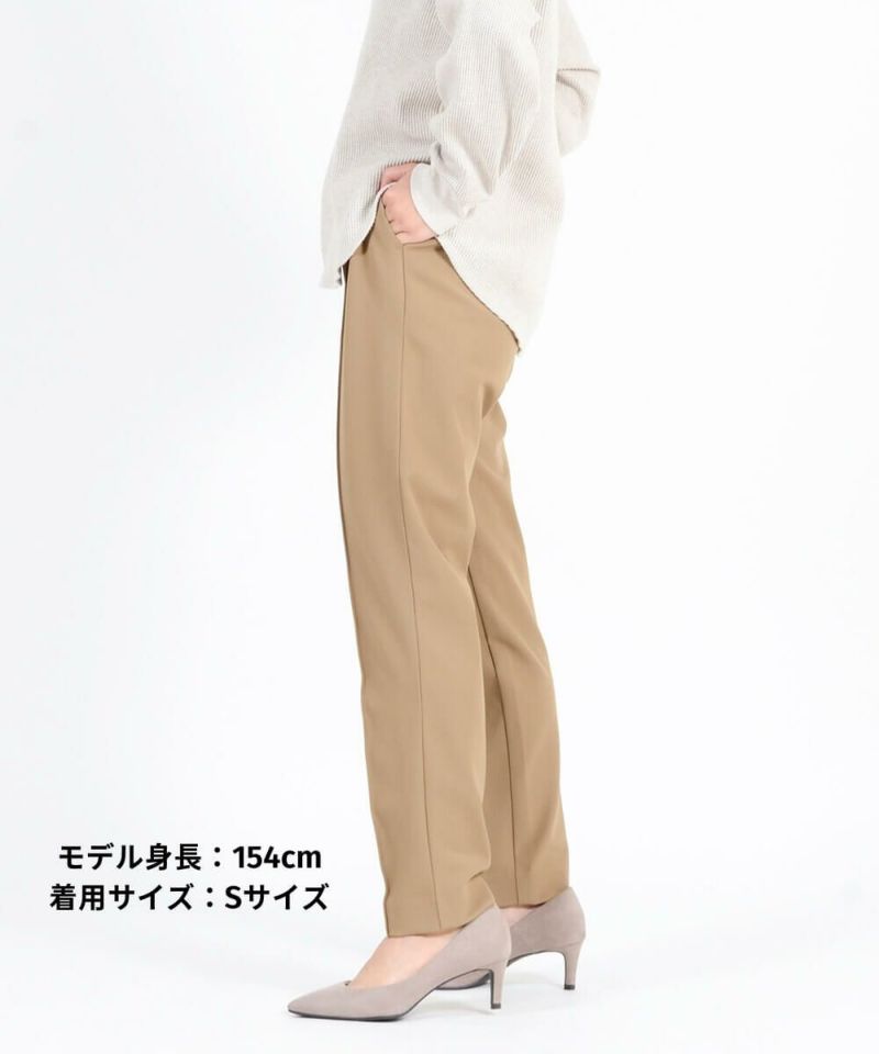 ヒップや太ももまわりはゆったりで、足首に向けて細くなるテーパードシルエットと、脚を長く見せるセンターピンタックが美脚効果を引き出します。