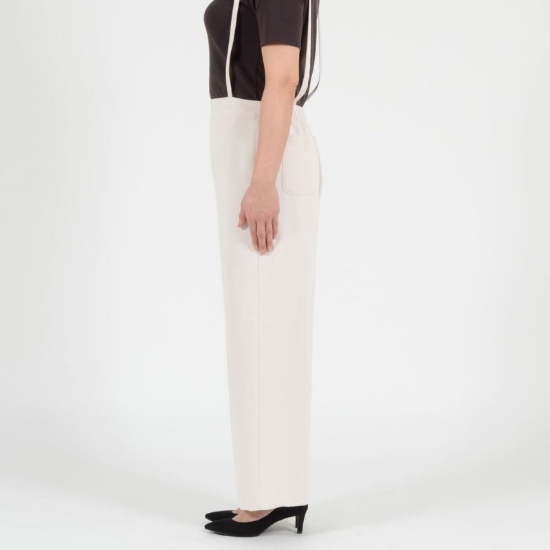 たどり着いたのは上質なストレッチ素材とシルエットから作られるストレートパンツ。当店のパンツは、年齢にかかわらず、女性なら誰もが抱える体型の悩みに寄り添い、 変化しやすい女性の体形にしっかりフィット、サポート。 長時間はいていても疲れにくく、キレイと快適を両立します。
