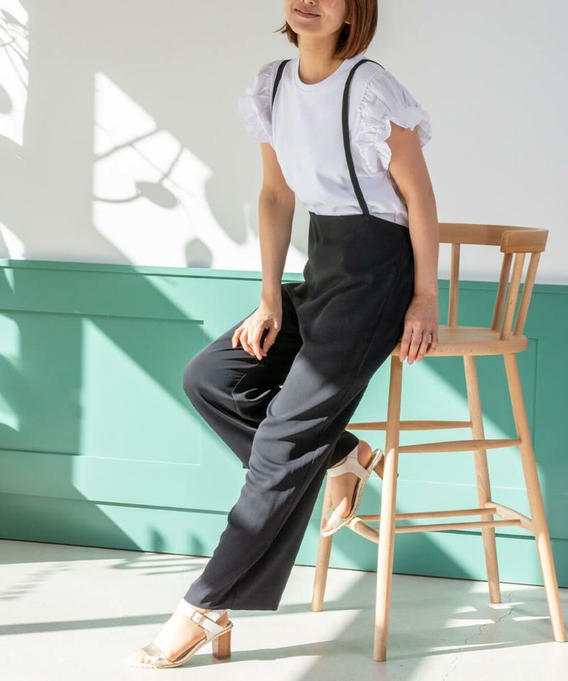 [SALE] 【日本製】サロペット・ワイドストレートパンツ 股下68cm