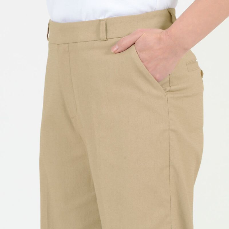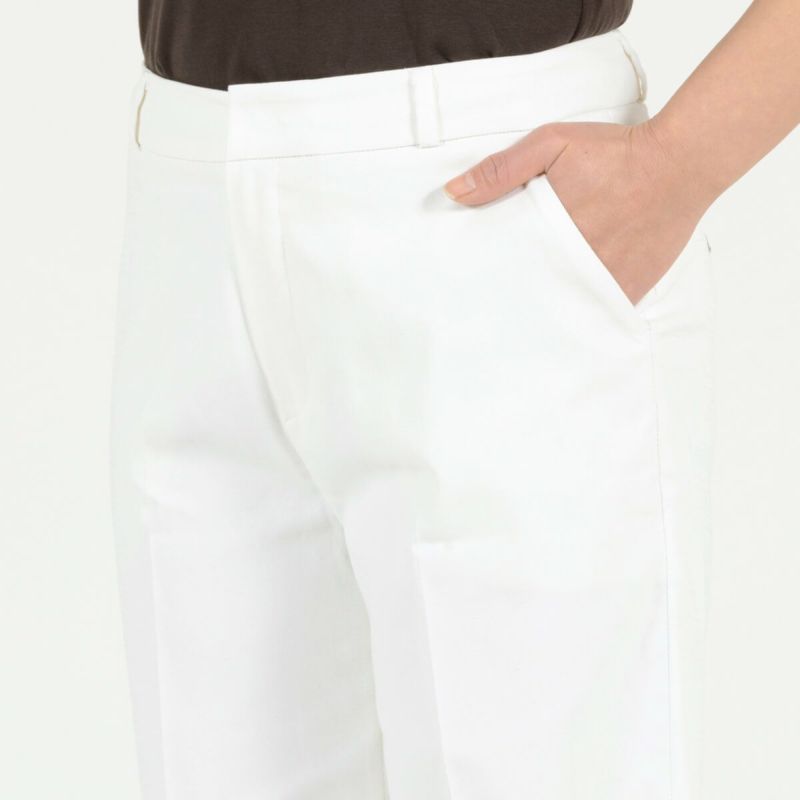 たどり着いたのは上質なストレッチ素材とシルエットから作られるストレートパンツ。当店のパンツは、年齢にかかわらず、女性なら誰もが抱える体型の悩みに寄り添い、 変化しやすい女性の体形にしっかりフィット、サポート。 長時間はいていても疲れにくく、キレイと快適を両立します。
