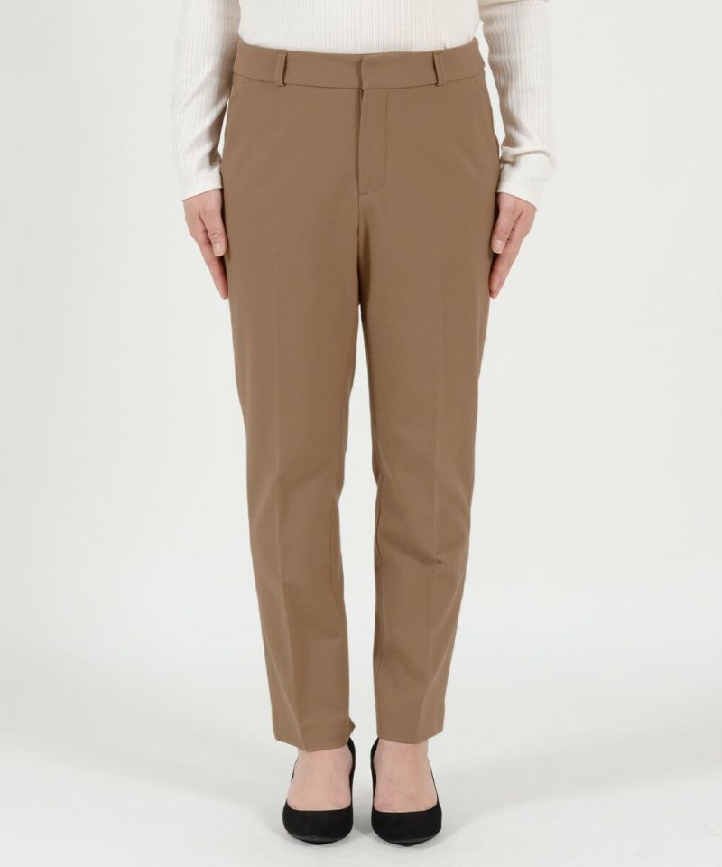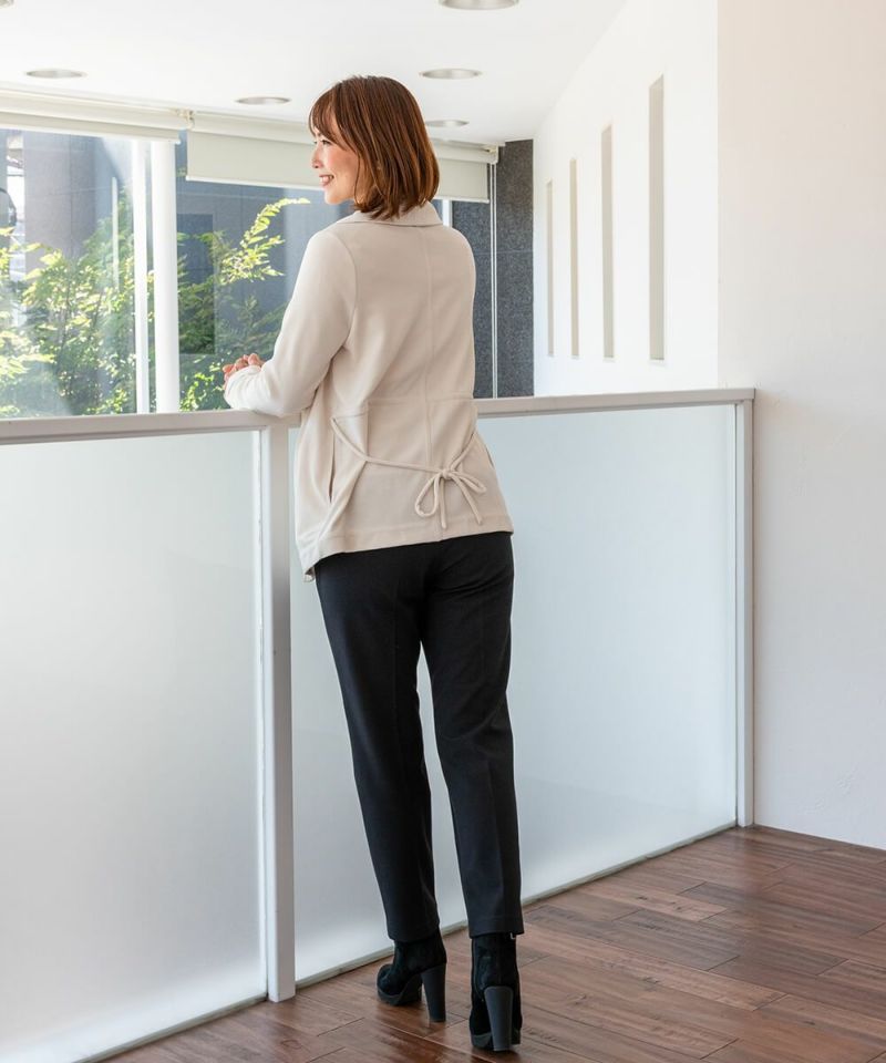 たどり着いたのは上質なストレッチ素材とシルエットから作られるストレートパンツ。当店のパンツは、年齢にかかわらず、女性なら誰もが抱える体型の悩みに寄り添い、 変化しやすい女性の体形にしっかりフィット、サポート。 長時間はいていても疲れにくく、キレイと快適を両立します。