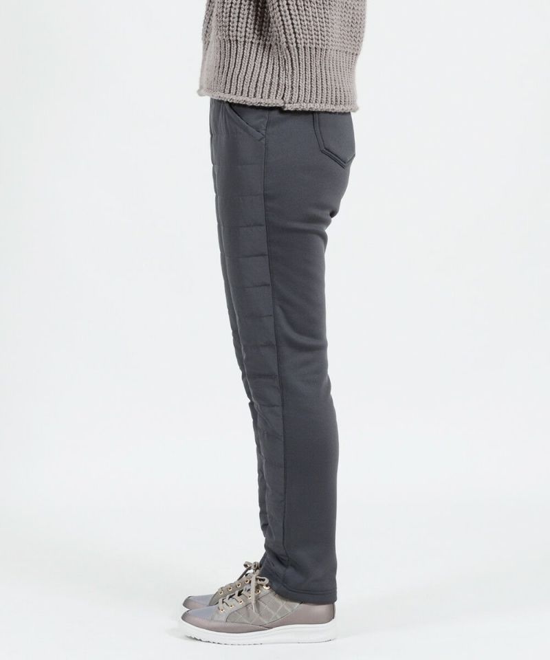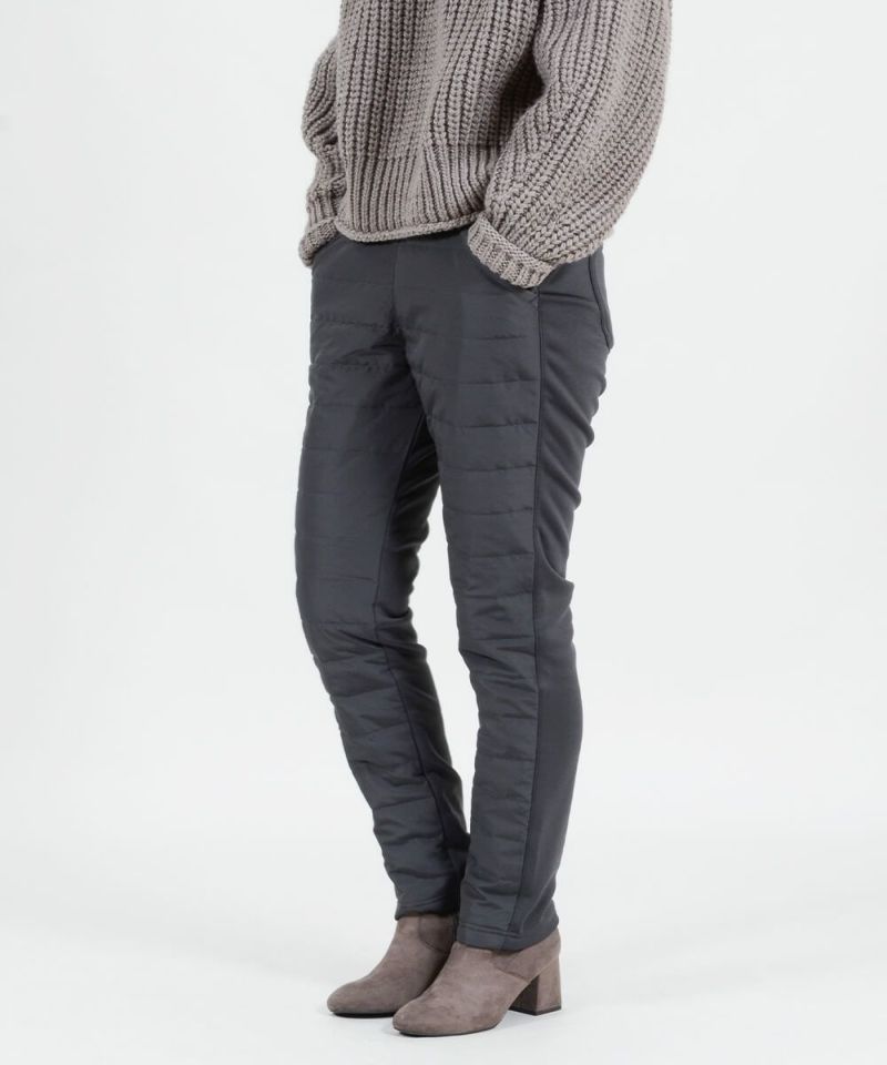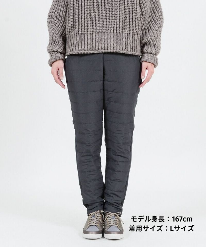 前身頃はタフタ生地+ダウン、後身頃には毛足の長い裏シャギー素材を使用し、高級毛布に脚を入れているような肌触りかつポッカポカのはき心地です。