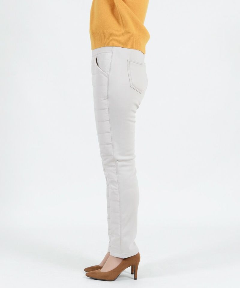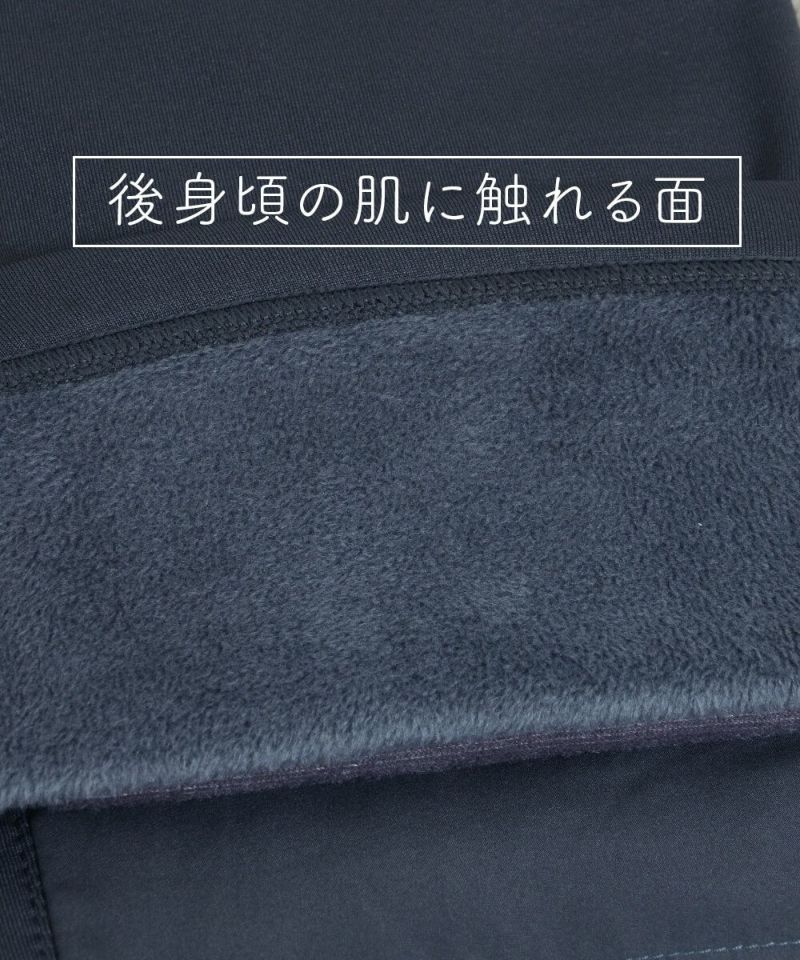 後身頃には、脚を通した瞬間からしっかり暖かく、そして裏起毛より毛足の長く暖かさを感じる裏シャギー素材を使用。
