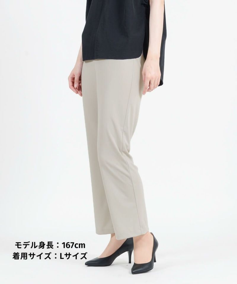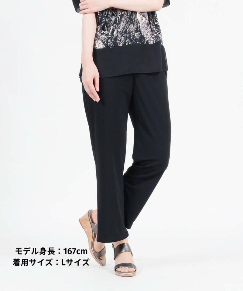 年齢を重ねると気になるウエストやヒップ周りをきれいに魅せるパターン設計で、はき心地と美脚を両立。