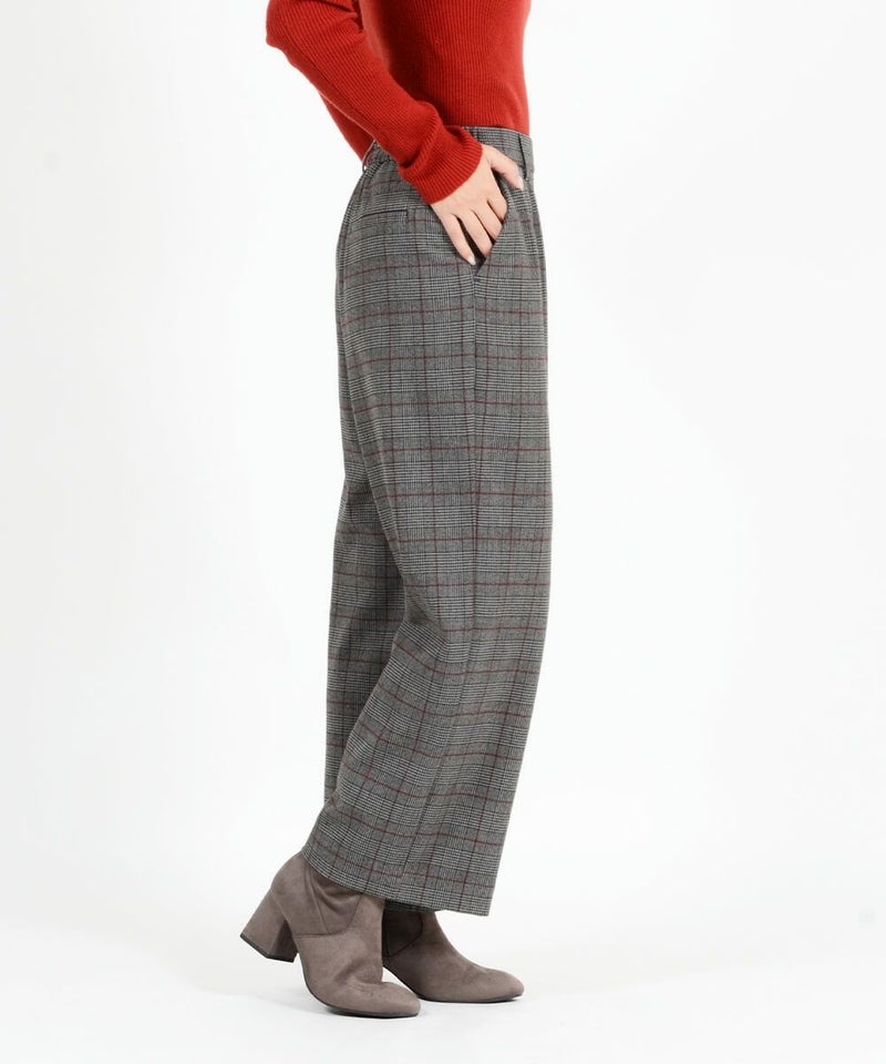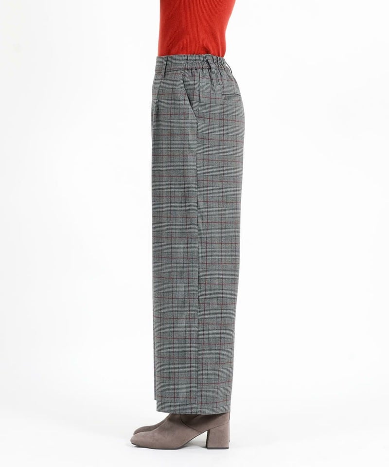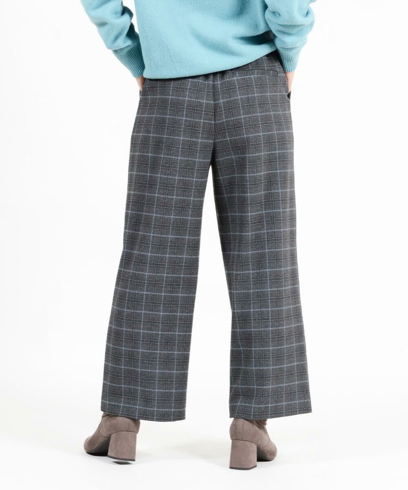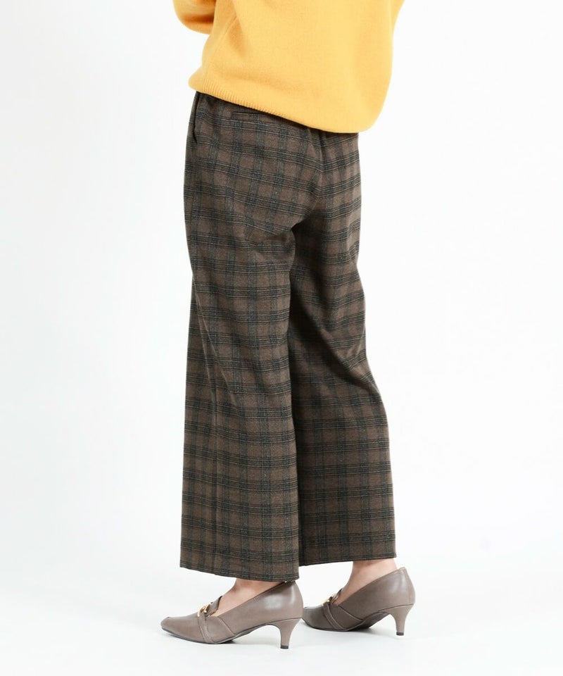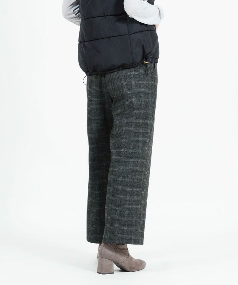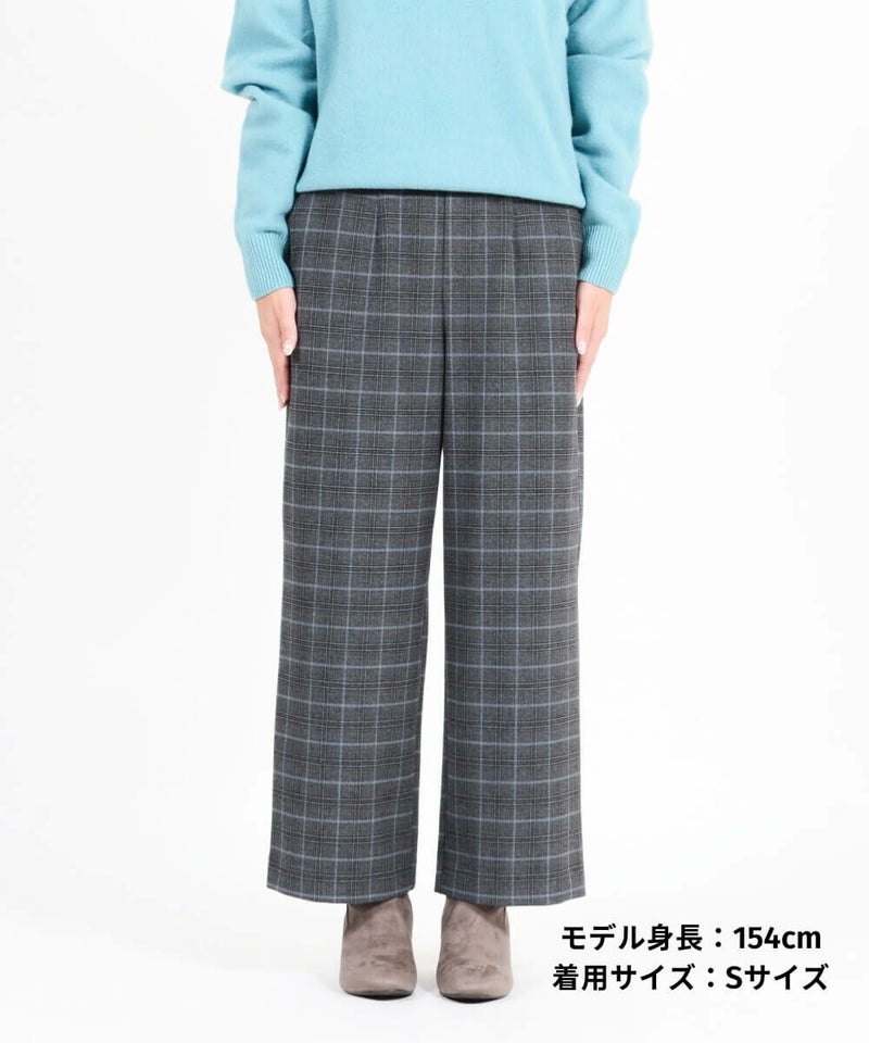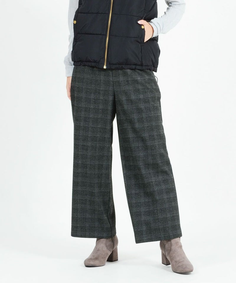 このワイドパンツは、ウール見えで上品な印象ながらも、お手入れ簡単素材なT/R両面起毛素材を使用。タテ・ヨコ、両方に伸びてくれるので締め付け感は感じません。