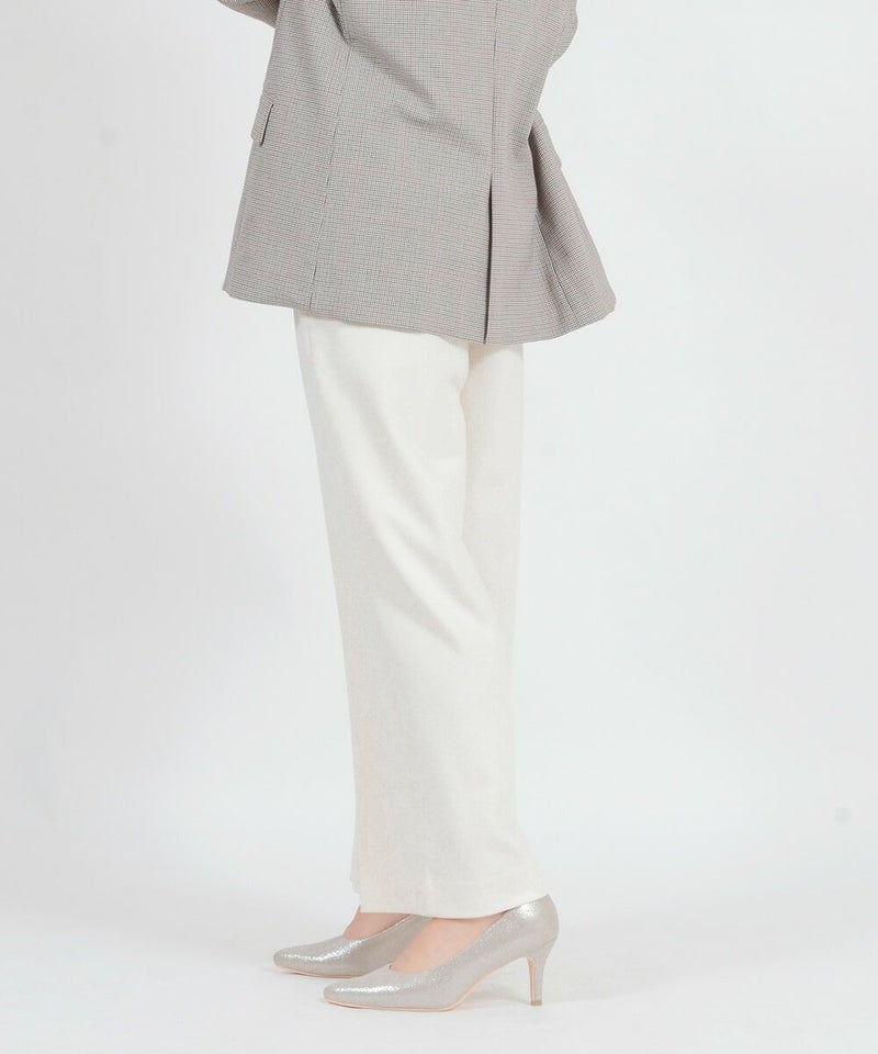たどり着いたのは上質なストレッチ素材とシルエットから作られるストレートパンツ。当店のパンツは、年齢にかかわらず、女性なら誰もが抱える体型の悩みに寄り添い、 変化しやすい女性の体形にしっかりフィット、サポート。 長時間はいていても疲れにくく、キレイと快適を両立します。