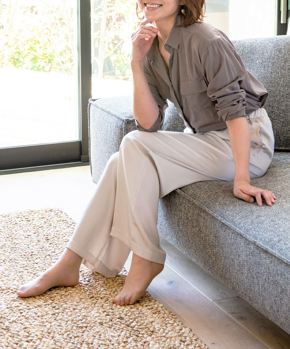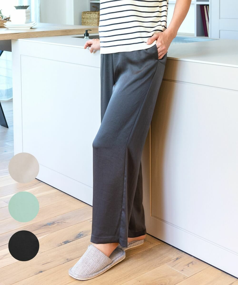 他の画像を見る <あと3点>上品な落ち感で女性らしさ引き立つ [SALE] 【日本製】とろみサテンイージーパンツ 股下68cm 定価 ¥ 8,480 のところ ¥ 4,530 税込 カートに入れる お気に入りに登録する